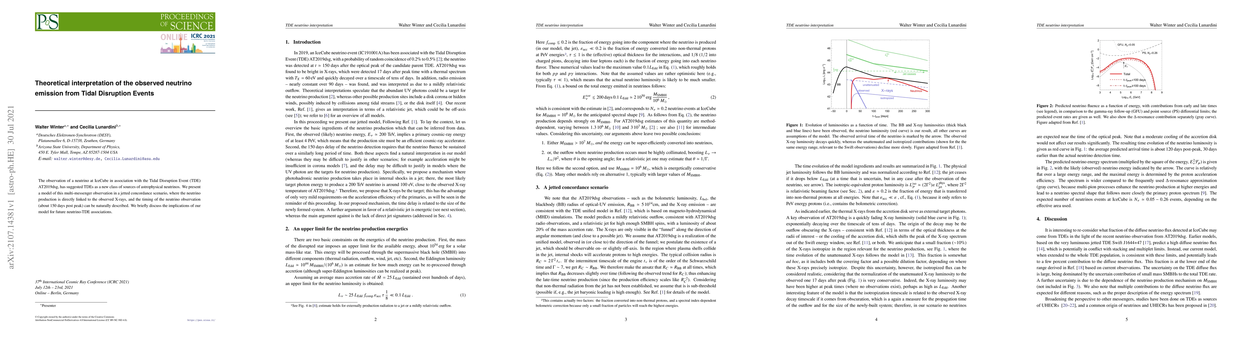 The observation of a neutrino at IceCube in association with the Tidal Disruption Event (TDE) AT2019dsg has suggested TDEs as a new class of sources of astrophysical neutrinos. We present a model of this multi-messenger observation in a jetted concordance scenario, where the neutrino production is directly linked to the observed X-rays, and the timing of the neutrino observation (about 150 days post peak) can be naturally described. We briefly discuss the implications of our model for future neutrino-TDE associations.