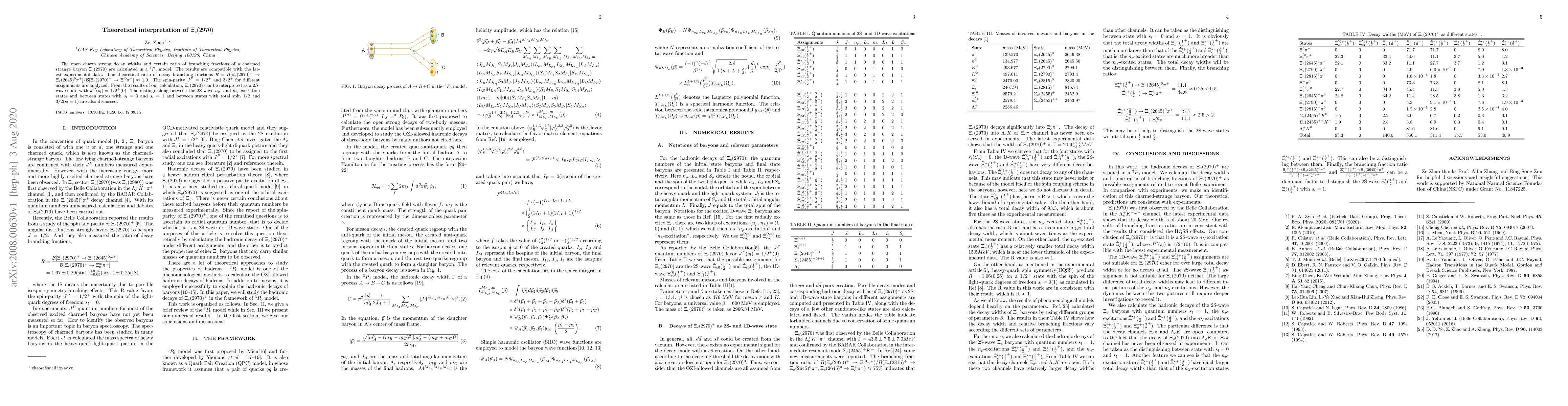 The open charm strong decay widths and certain ratio of branching fractions of a charmed strange baryon $\Xi_c(2970)$ are calculated in a $^3P_0$ model. The results are compatible with the latest experimental data. The theoretical ratio of decay branching fractions $R = \mathcal{B} [ \Xi_{c}(2970)^+ \rightarrow \Xi_c(2645)^{0}\pi^{+} ] / \mathcal{B} [ \Xi_{c}(2970)^+ \rightarrow \Xi_c^{\prime0}\pi^{+}] \approx 1.0$. The spin-parity $J^P = 1/2^+$ and $3/2^+$ for different assignments are analyzed. From the results of our calculation, $\Xi_{c}(2970)$ can be interpreted as a $2S$-wave state with $J^P(s_l) = 1/2^+(0)$. The distinguishing between the 2S-wave $n_\rho$- and $n_\lambda$-excitation states and between states with $s_l = 0$ and $s_l = 1$ and between states with total spin $1/2$ and $3/2$($s_l = 1$) are also discussed.