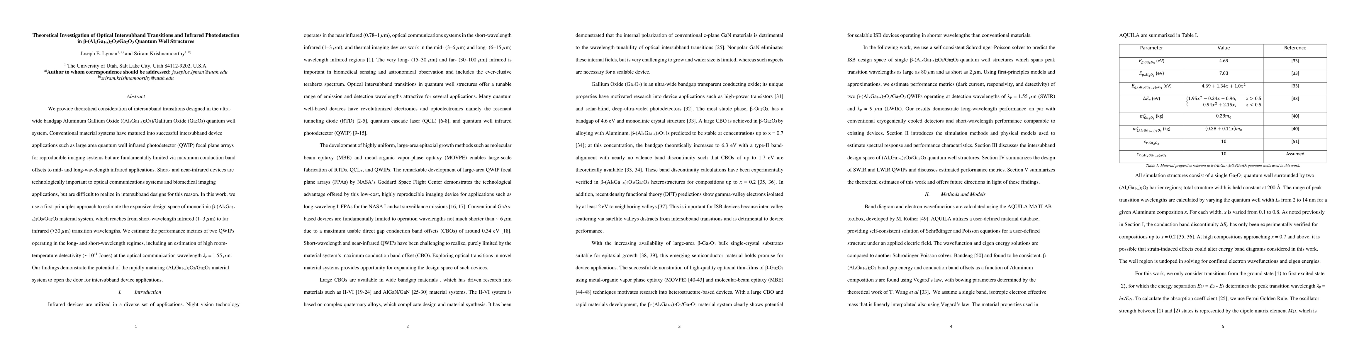 We provide theoretical consideration of intersubband transitions designed in the ultrawide bandgap Aluminum Gallium Oxide ((AlxGa1-x)2O3)/Gallium Oxide (Ga2O3)) quantum well system. Conventional material systems have matured into successful intersubband device applications such as large area quantum well infrared photodetector(QWIP) focal plane arrays for reproducible imaging systems but are fundamentally limited via maximum conduction band offsets to mid and long wavelength infrared applications. Short and near infrared devices are technologically important to optical communications systems and biomedical imaging applications, but are difficult to realize in intersubband designs for this reason. In this work, we use a first principles approach to estimate the expansive design space of monoclinic ${\beta}$(AlxGa1x)2O3/Ga2O3 material system, which reaches from short wavelength infrared (1 to 3{\mu}m) to far infrared (greater than 30{\mu}m) transition wavelengths. We estimate the performance metrics of two QWIPs operating in the long and short wavelength regimes, including an estimation of high room temperature detectivity (about 10^11 Jones) at the optical communication wavelength {\lambda}p 1.55{\mu}m. Our findings demonstrate the potential of the rapidly maturing (AlxGa1-x)2O3/Ga2O3 material system to open the door for intersubband device applications.
