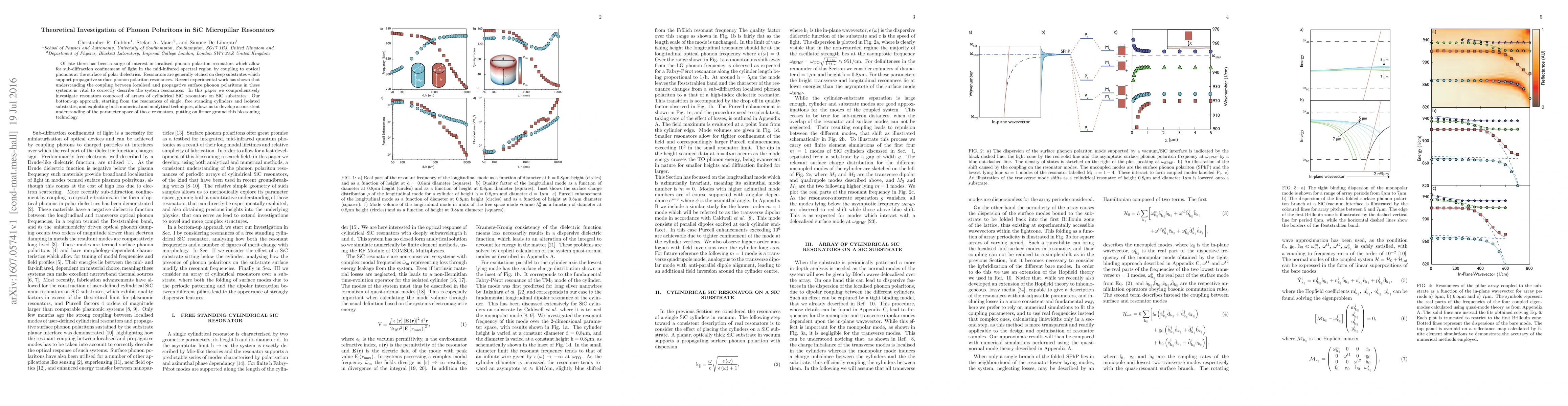 Of late there has been a surge of interest in localised phonon polariton resonators which allow for sub-diffraction confinement of light in the mid-infrared spectral region by coupling to optical phonons at the surface of polar dielectrics. Resonators are generally etched on deep substrates which support propagative surface phonon polariton resonances. Recent experimental work has shown that understanding the coupling between localised and propagative surface phonon polaritons in these systems is vital to correctly describe the system resonances. In this paper we comprehensively investigate resonators composed of arrays of cylindrical SiC resonators on SiC substrates. Our bottom-up approach, starting from the resonances of single, free standing cylinders and isolated substrates, and exploiting both numerical and analytical techniques, allows us to develop a consistent understanding of the parameter space of those resonators, putting on firmer ground this blossoming technology.