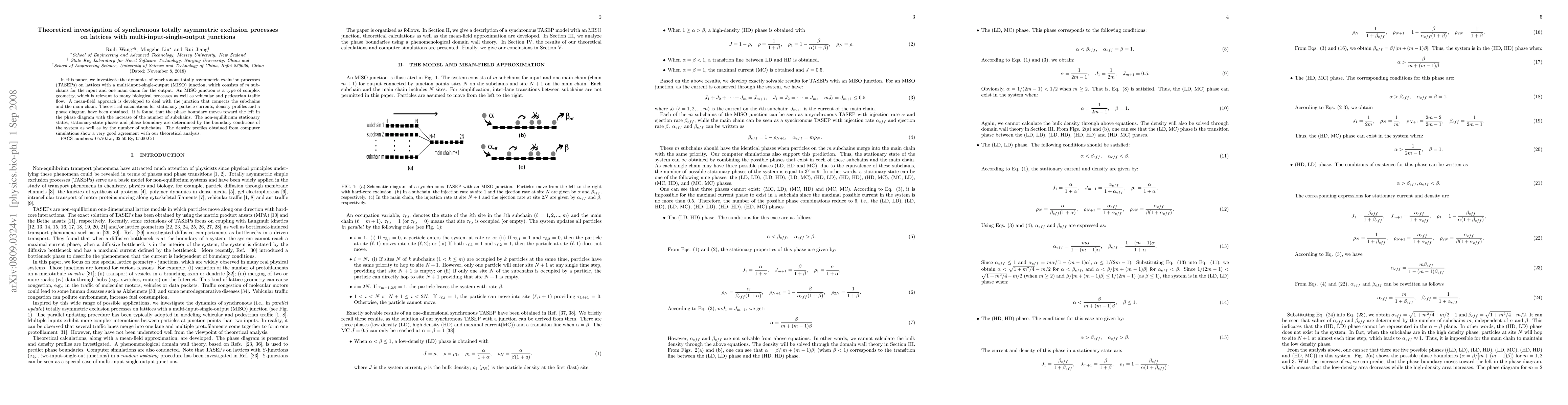 Researchers investigate dynamics of synchronous totally asymmetric exclusion processes on lattices with multiple-input single-output junctions, finding that phase boundaries move toward the left as the number of subchains increases.