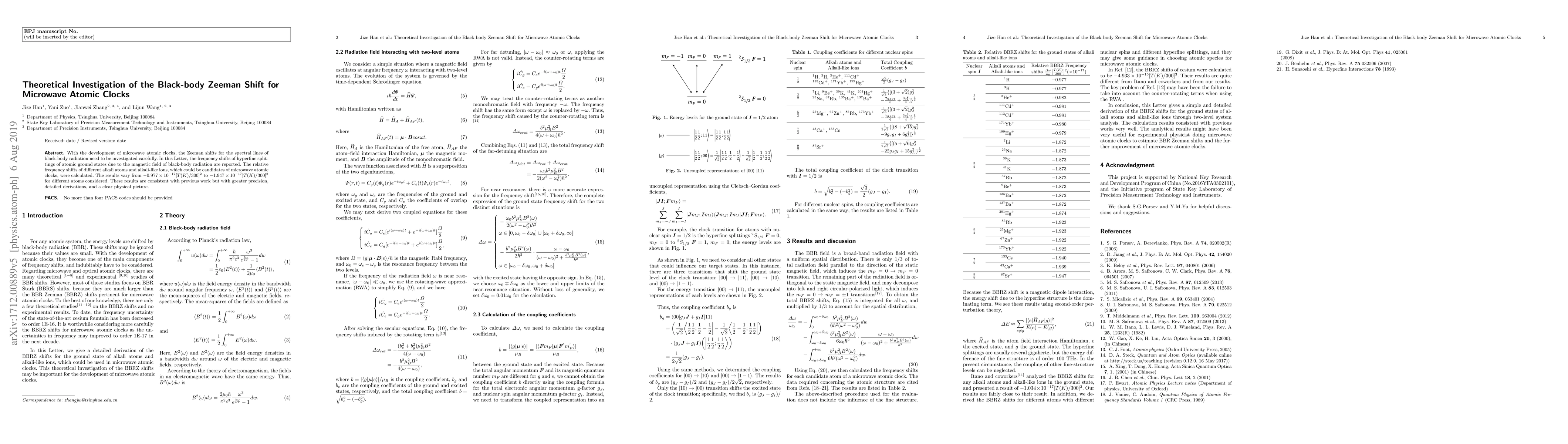 This paper investigates the Zeeman shifts in spectral lines of black-body radiation affecting microwave atomic clocks, calculating precise relative frequency shifts for various alkali atoms and ions. The results provide a refined understanding of the black-body Zeeman effect, ranging from $-0.977\times10^{-17}[T(K)/300]^{2}$ to $-1.947\times10^{-17}[T(K)/300]^{2}$.