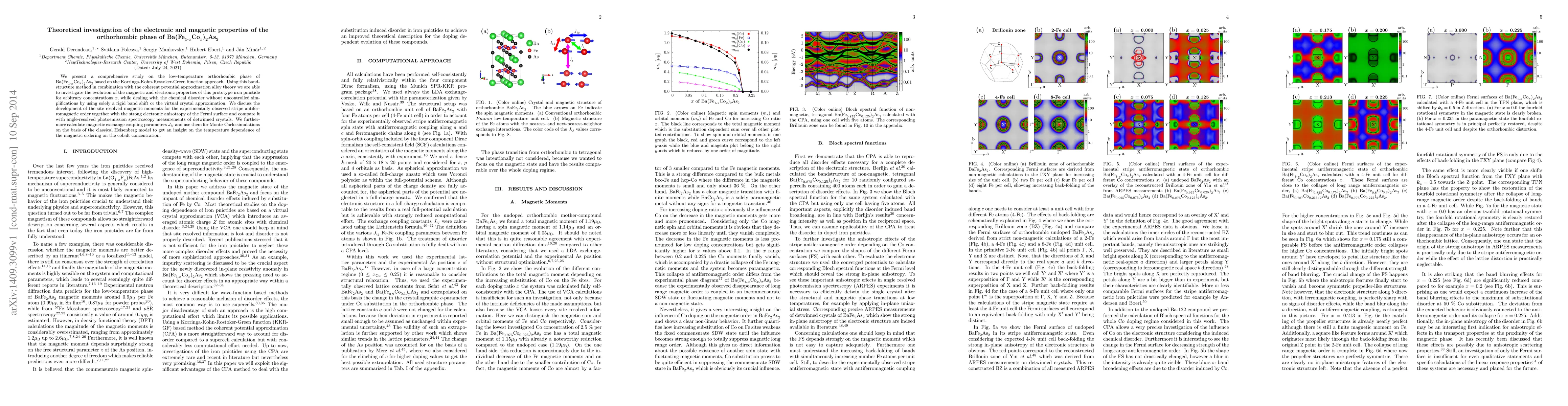 We present a comprehensive study on the low-temperature orthorhombic phase of Ba(Fe$_{1-x}$Co$_x$)$_2$As$_2$ based on the Korringa-Kohn-Rostoker-Green function approach. Using this bandstructure method in combination with the coherent potential approximation alloy theory we are able to investigate the evolution of the magnetic and electronic properties of this prototype iron pnictide for arbitrary concentrations $x$, while dealing with the chemical disorder without uncontrolled simplifications by using solely a rigid band shift or the virtual crystal approximation. We discuss the development of the site resolved magnetic moments for the experimentally observed stripe antiferromagnetic order together with the strong electronic anisotropy of the Fermi surface and compare it with angle-resolved photoemission spectroscopy measurements of detwinned crystals. We furthermore calculate magnetic exchange coupling parameters $J_{ij}$ and use them for Monte-Carlo simulations on the basis of the classical Heisenberg model to get an insight on the temperature dependence of the magnetic ordering on the cobalt concentration.