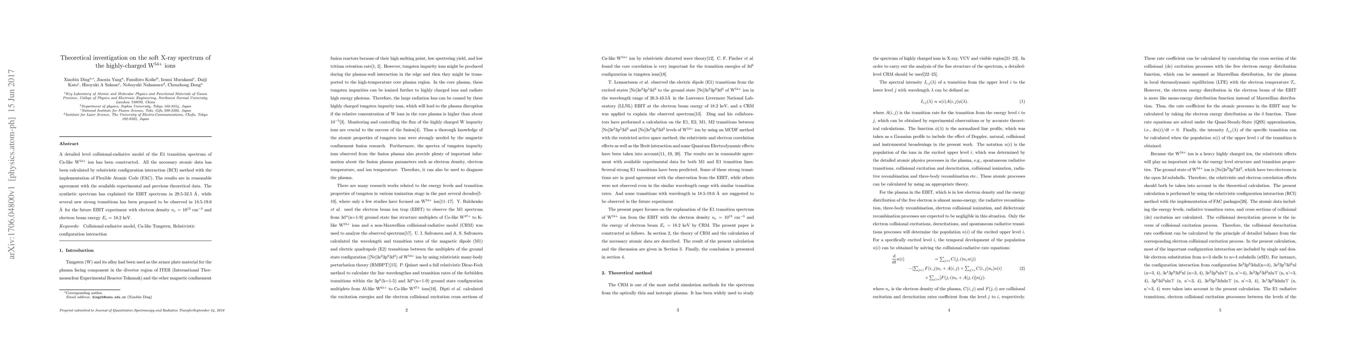 A detailed level collisional-radiative model of the E1 transition spectrum of Ca-like W$^{54+}$ ion has been constructed. All the necessary atomic data has been calculated by relativistic configuration interaction (RCI) method with the implementation of Flexible Atomic Code (FAC). The results are in reasonable agreement with the available experimental and previous theoretical data. The synthetic spectrum has explained the EBIT spectrum in 29.5-32.5 \AA ,, while several new strong transitions has been proposed to be observed in 18.5-19.6 \AA , for the future EBIT experiment with electron density $n_e$ = $10^{12}$ cm$^{-3}$ and electron beam energy $E_e$ = 18.2 keV.