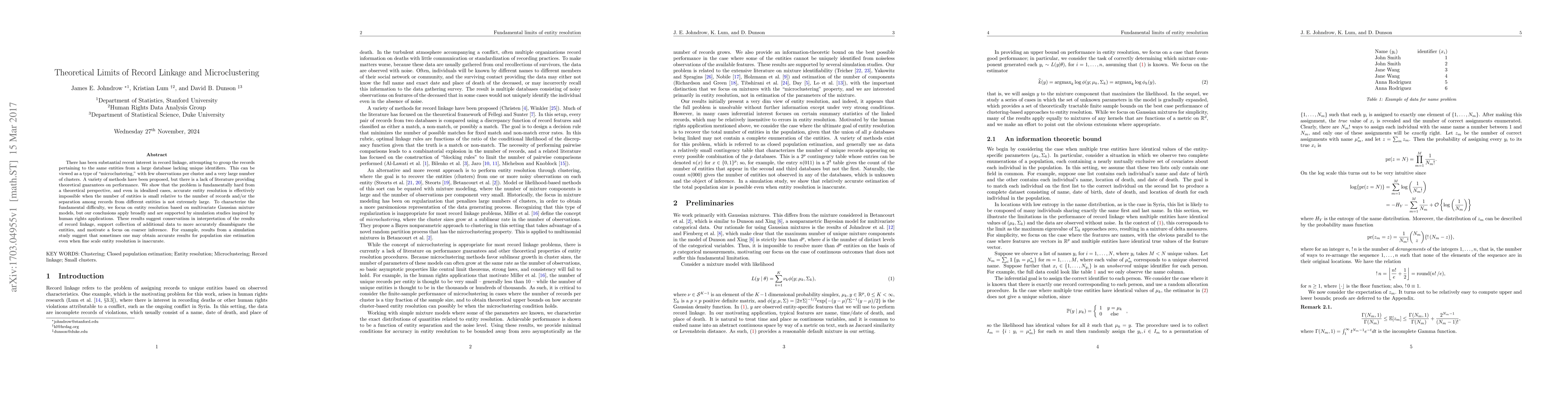 This paper demonstrates that record linkage, viewed as a form of microclustering, is theoretically challenging, especially when the number of entities is small compared to records or when records are not sufficiently distinct. The study suggests that accurate entity resolution is often impractical, advocating for more conservative interpretations and the collection of additional data for better entity disambiguation.