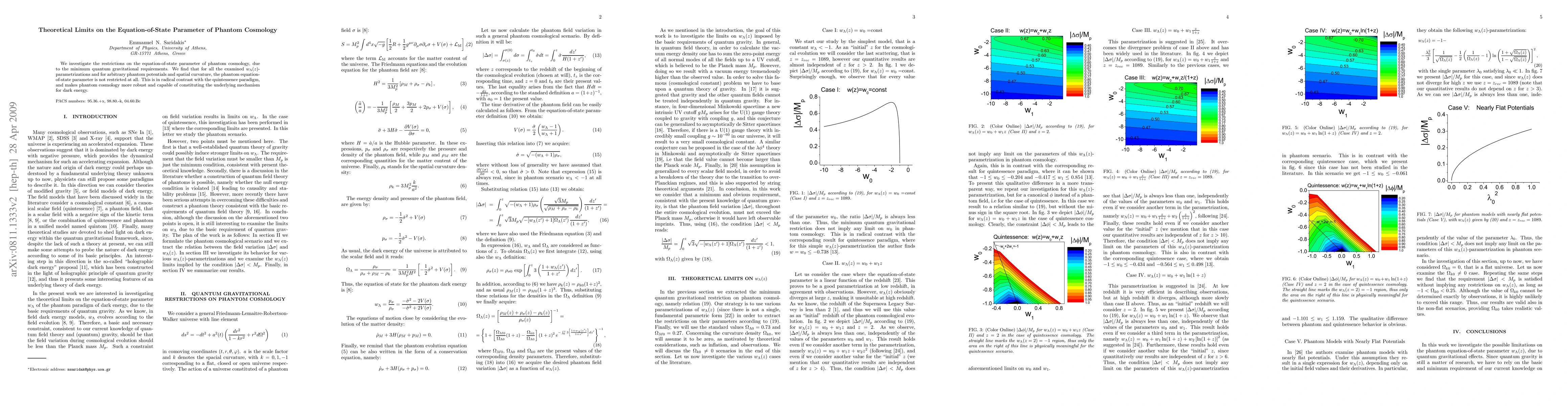 This paper explores theoretical constraints on the phantom cosmology's equation-of-state parameter, finding no restrictions from quantum gravity. Unlike quintessence, phantom cosmology remains robust and potentially viable as a dark energy mechanism.