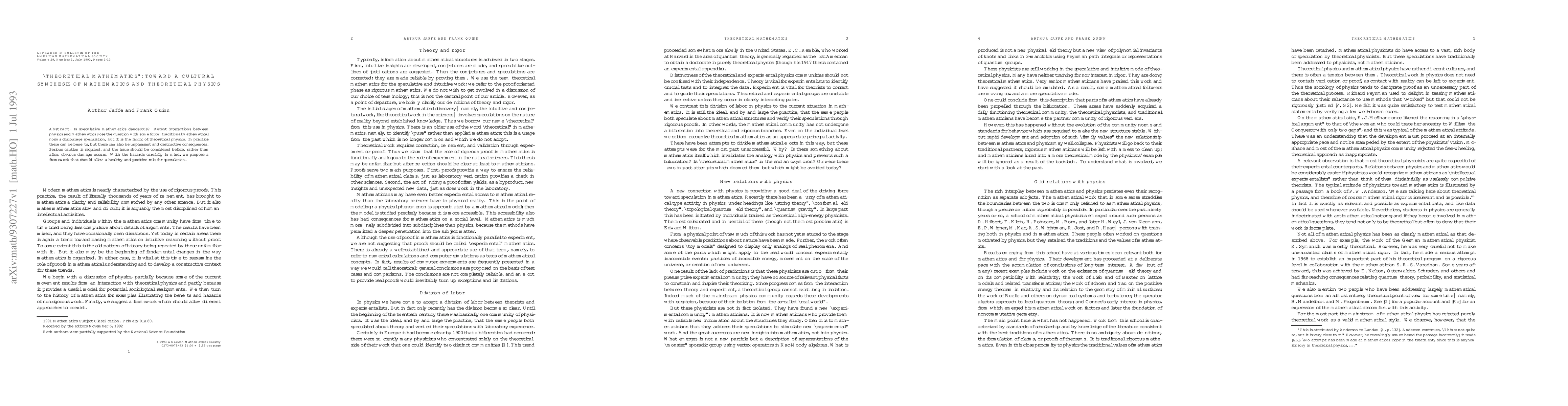Is speculative mathematics dangerous? Recent interactions between physics and mathematics pose the question with some force: traditional mathematical norms discourage speculation, but it is the fabric of theoretical physics. In practice there can be benefits, but there can also be unpleasant and destructive consequences. Serious caution is required, and the issue should be considered before, rather than after, obvious damage occurs. With the hazards carefully in mind, we propose a framework that should allow a healthy and positive role for speculation.