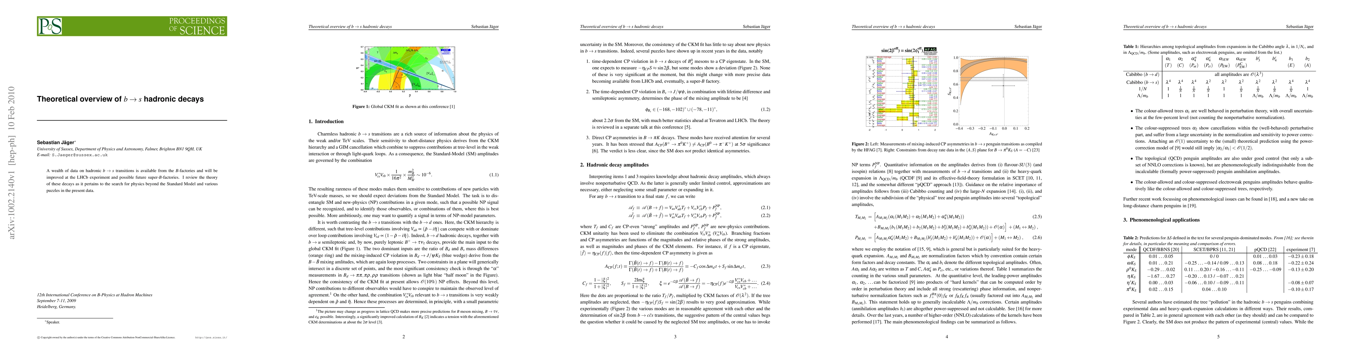 A wealth of data on hadronic b -> s transitions is available from the B-factories and will be improved at the LHCb experiment and possible future super-B-factories. I review the theory of these decays as it pertains to the search for physics beyond the Standard Model and various puzzles in the present data.