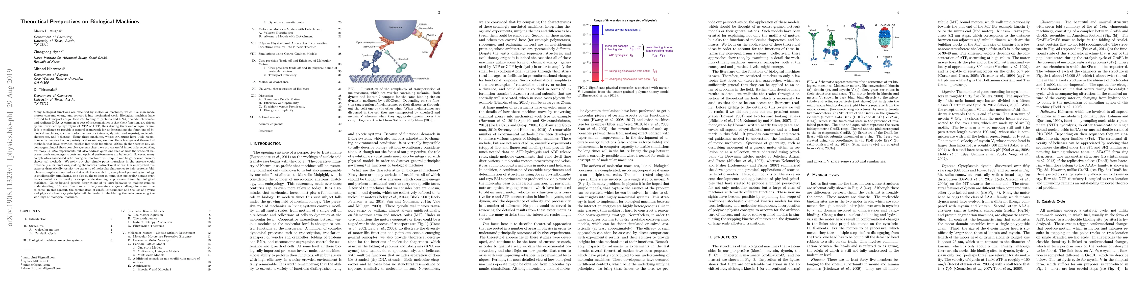 Biological machines, like molecular motors and chaperones, convert energy into mechanical work to perform vital functions. Researchers propose theoretical methods to understand their operations, but acknowledge that detailed molecular insights are essential for a complete understanding of these biological systems.
