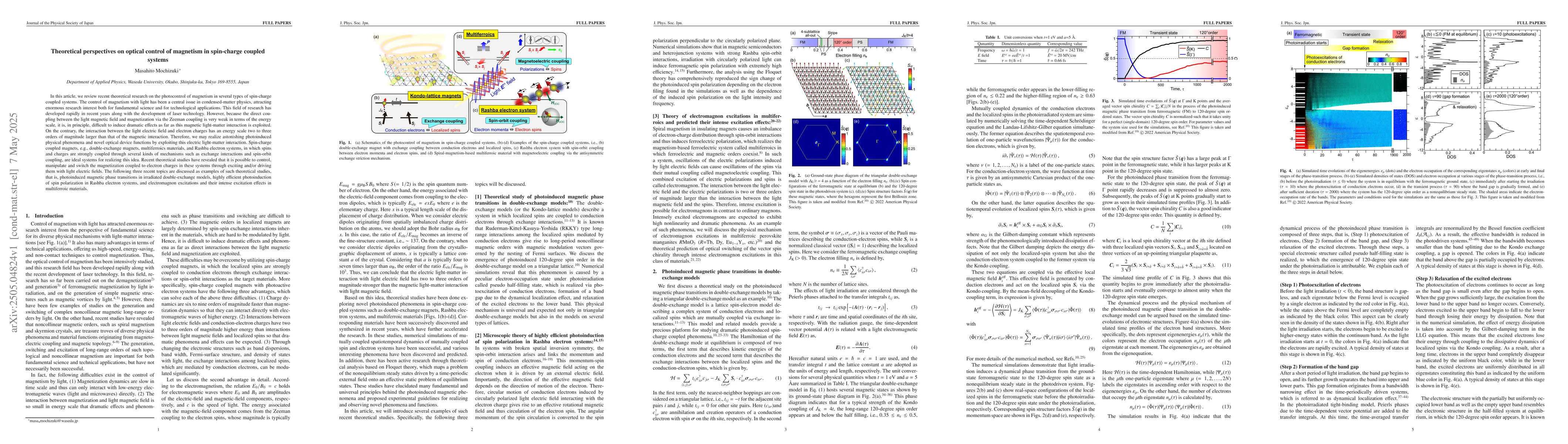 This article reviews theoretical advancements in photocontrolling magnetism in spin-charge coupled systems, highlighting the potential of light electric fields to manipulate magnetization in materials like double-exchange magnets and multiferroics, despite the weak magnetic light-matter interaction.
