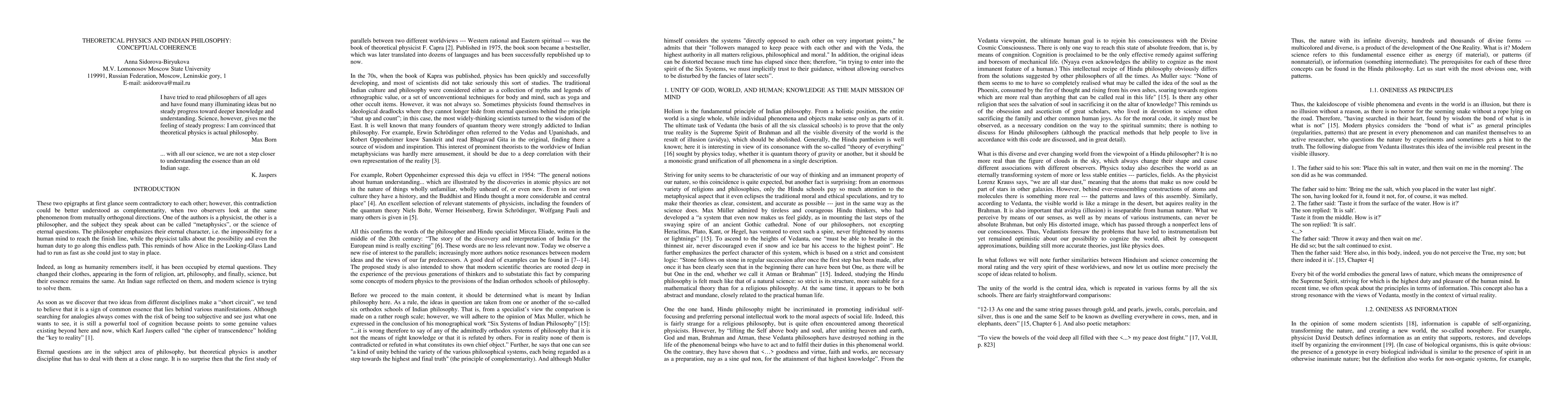 The paper addresses the phenomenon of cross-cultural resonance, which arises when ideas coming from different cultures and view systems show mutual correlation, or coherence. We particularly dwell on the parallels between modern physics and Indian classical philosophy. The coherence in ideological, methodological, and ethical spheres is noted and exemplified. Interpretation of correlations in terms of the Jaspers 'ciphers of transcendence' is proposed. A brief survey of studies also dealing with coherence between modern science and ancient teachings is given. In conclusion, a broader perspective of interrelations between rational science and spiritual tradition is discussed.