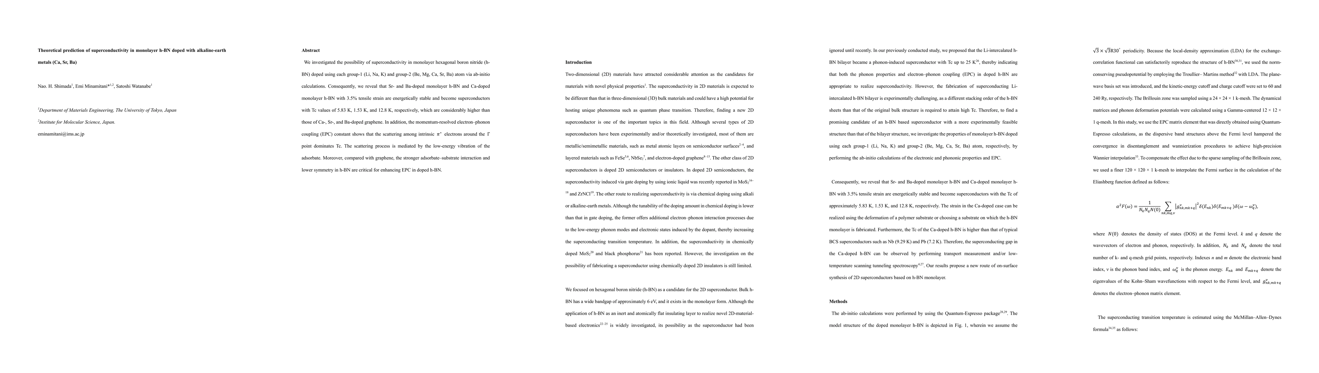 The study reveals that Sr- and Ba-doped monolayer h-BN, along with Ca-doped h-BN under 3.5% tensile strain, become superconductors with Tc values of 5.83 K, 1.53 K, and 12.8 K respectively, due to enhanced electron-phonon coupling mediated by low-energy vibrations.
