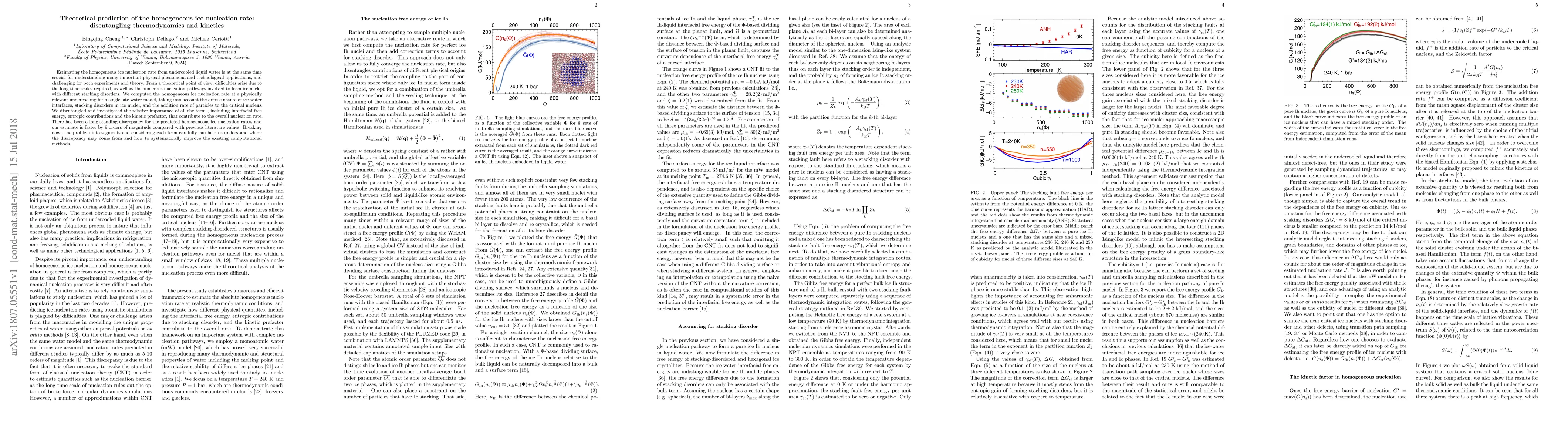 This paper theoretically predicts the homogeneous ice nucleation rate from undercooled water, addressing long-time scales and multiple nucleation pathways. The authors' estimate is faster by 9 orders of magnitude than previous values, highlighting the importance of considering interfacial free energy, entropy, and kinetic factors to resolve discrepancies and improve computational methods.