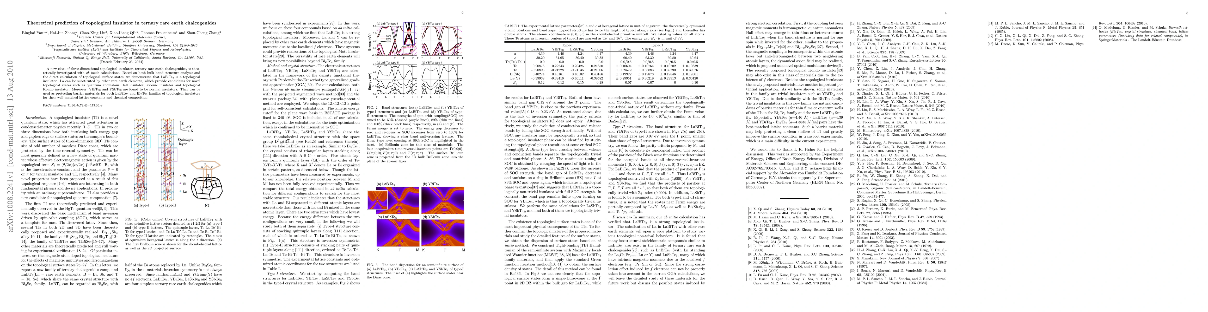This paper theoretically predicts that ternary rare earth chalcogenides, specifically LaBiTe3, are three-dimensional topological insulators, supported by ab initio calculations. It also explores the potential for substituting La with other rare earth elements to create novel topological states.