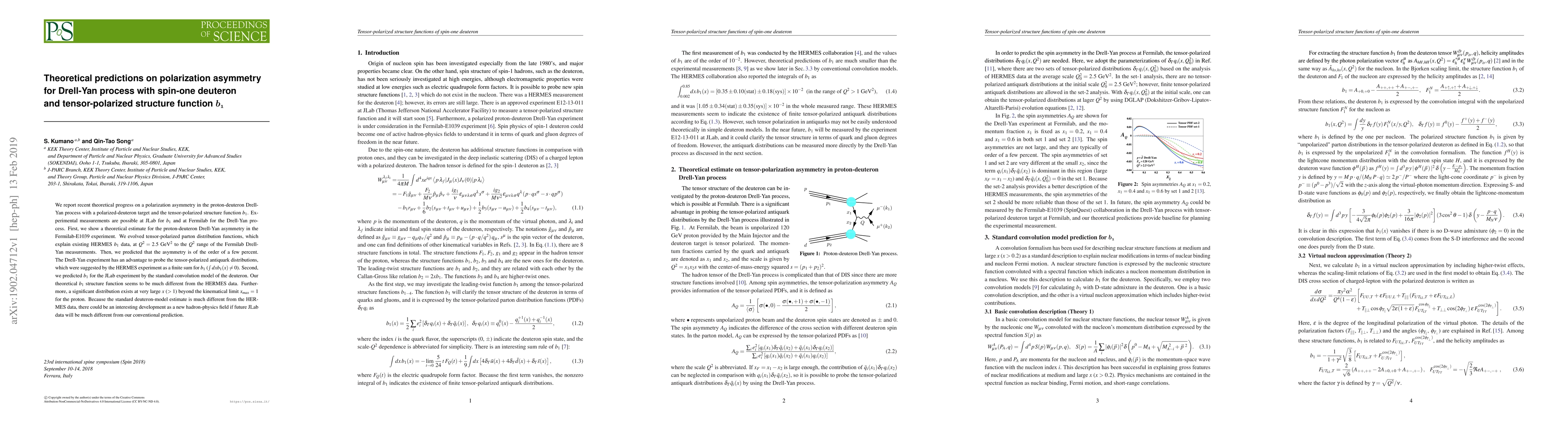 The paper presents detailed theoretical predictions for the tensor-polarization asymmetry in the proton-deuteron Drell-Yan process, utilizing tensor-polarized parton distribution functions and DGLAP evolution equations.
