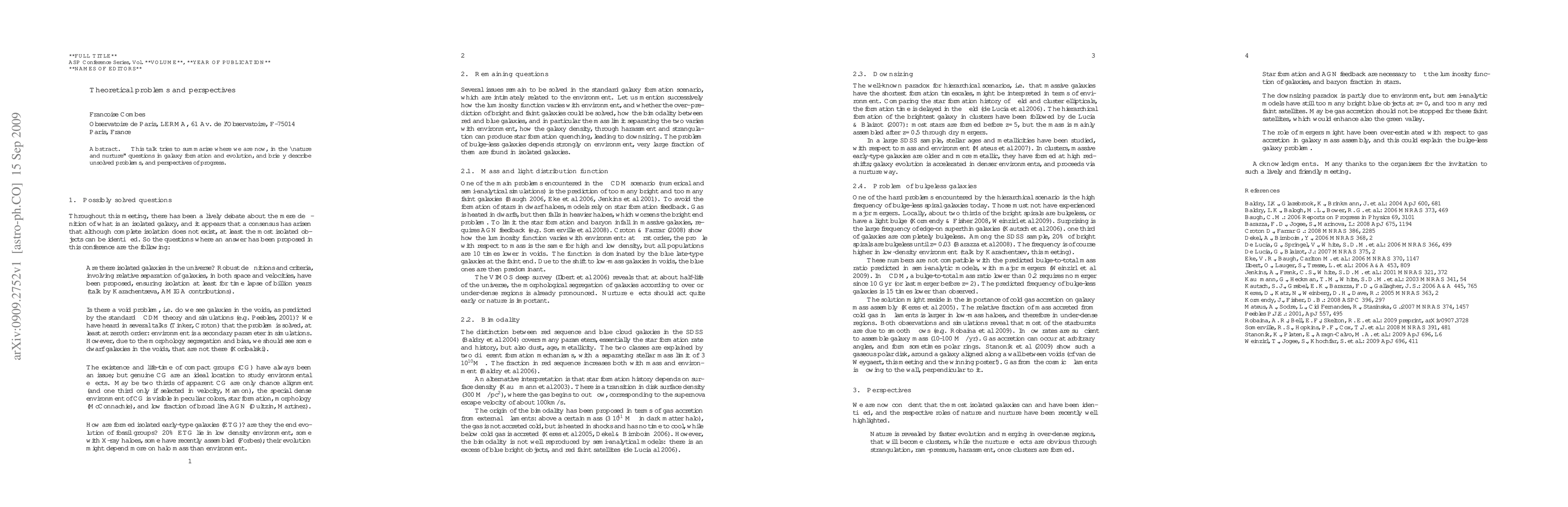 This talk tries to summarise where we are now, in the "nature and nurture" questions in galaxy formation and evolution, and briefly describe unsolved problems, and perspectives of progress.