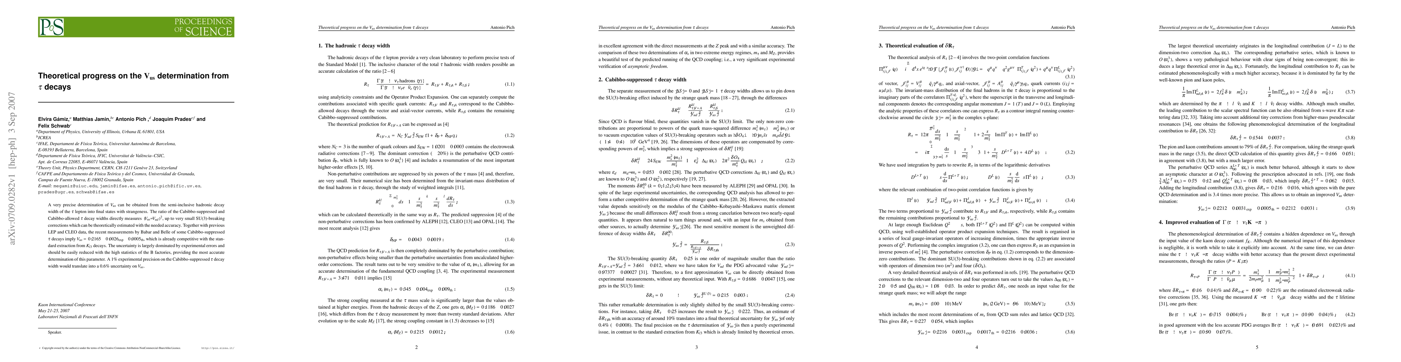 A very precise determination of V_us can be obtained from the semi-inclusive hadronic decay width of the tau lepton into final states with strangeness. The ratio of the Cabibbo-suppressed and Cabibbo-allowed tau decay widths directly measures (V_us/V_ud)^2, up to very small SU(3)-breaking corrections which can be theoretically estimated with the needed accuracy. Together with previous LEP and CLEO data, the recent measurements by Babar and Belle of some Cabibbo-suppressed tau decays imply V_us= 0.2165 +- 0.0026_exp +- 0.0005_th, which is already competitive with the standard extraction from K_l3 decays. The uncertainty is largely dominated by experimental errors and should be easily reduced with the high statistics of the B factories, providing the most accurate determination of this parameter. A 1% experimental precision on the Cabibbo-suppressed tau decay width would translate into a 0.6% uncertainty on V_us.