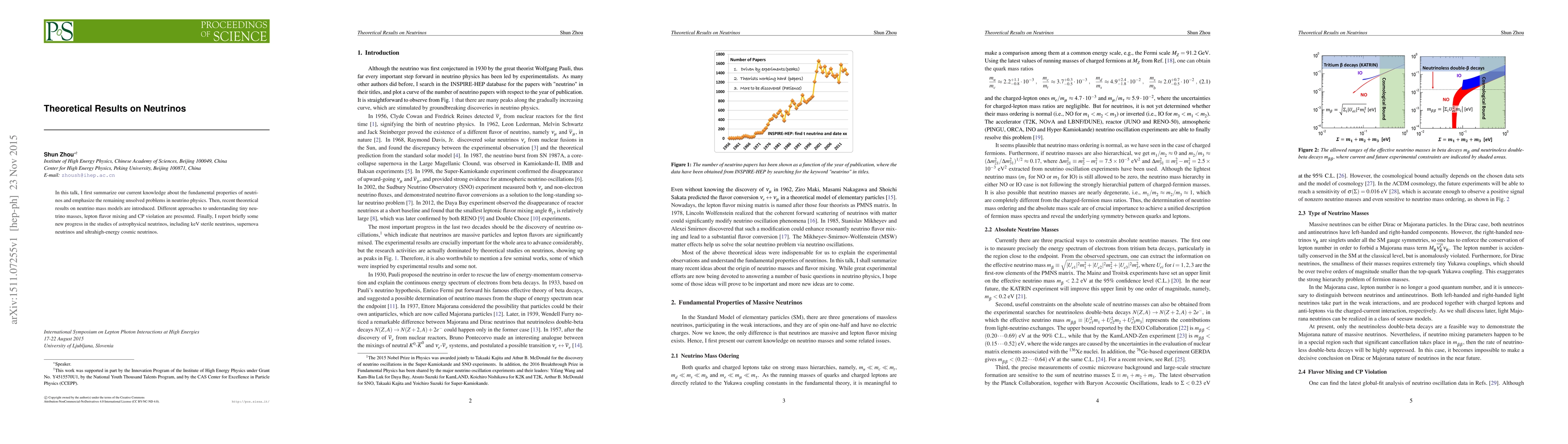 In this talk, I first summarize our current knowledge about the fundamental properties of neutrinos and emphasize the remaining unsolved problems in neutrino physics. Then, recent theoretical results on neutrino mass models are introduced. Different approaches to understanding tiny neutrino masses, lepton flavor mixing and CP violation are presented. Finally, I report briefly some new progress in the studies of astrophysical neutrinos, including keV sterile neutrinos, supernova neutrinos and ultrahigh-energy cosmic neutrinos.