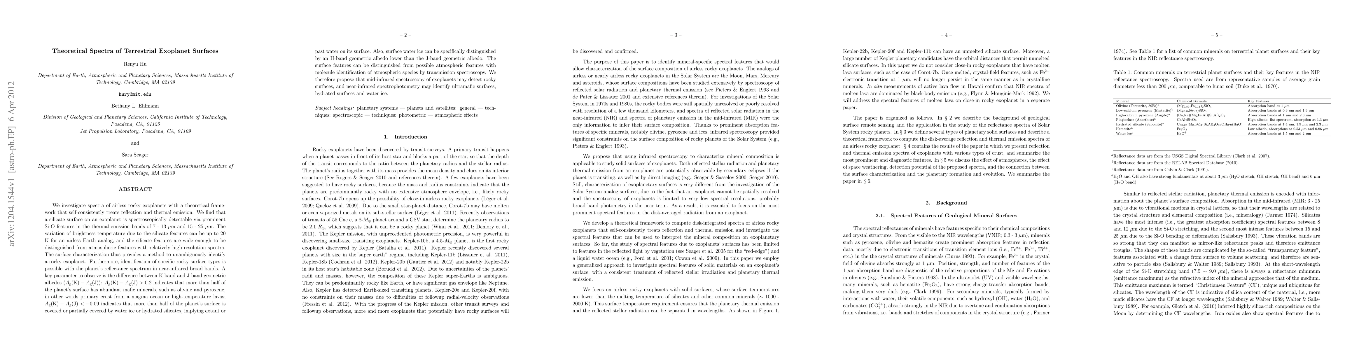 This paper proposes a theoretical framework for detecting silicate surfaces on airless rocky exoplanets via their thermal emission spectra, particularly in the 7-25 µm range. It suggests that mid-infrared spectroscopy can identify silicate features and distinguish them from atmospheric features, enabling the characterization of exoplanetary surfaces and the identification of specific mineral compositions.
