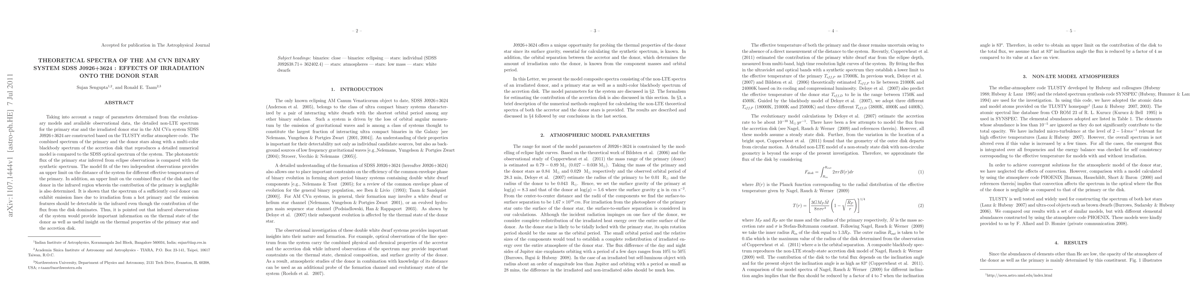 This paper constructs detailed non-LTE spectra for the primary and donor stars in the eclipsing AM CVn system SDSS J0926+3624, considering irradiation effects, and compares these to the SDSS optical spectrum. Infrared observations are suggested as crucial for understanding the thermal state of the donor star and the thermal properties of the primary and accretion disk.