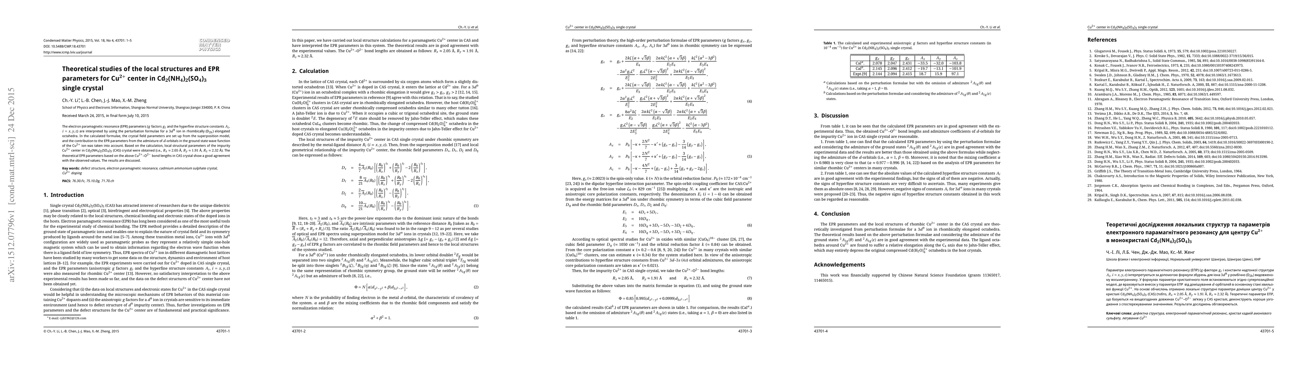 Researchers used theoretical models to study the local structure and EPR parameters of a copper ion in a specific crystal, achieving good agreement with experimental values.