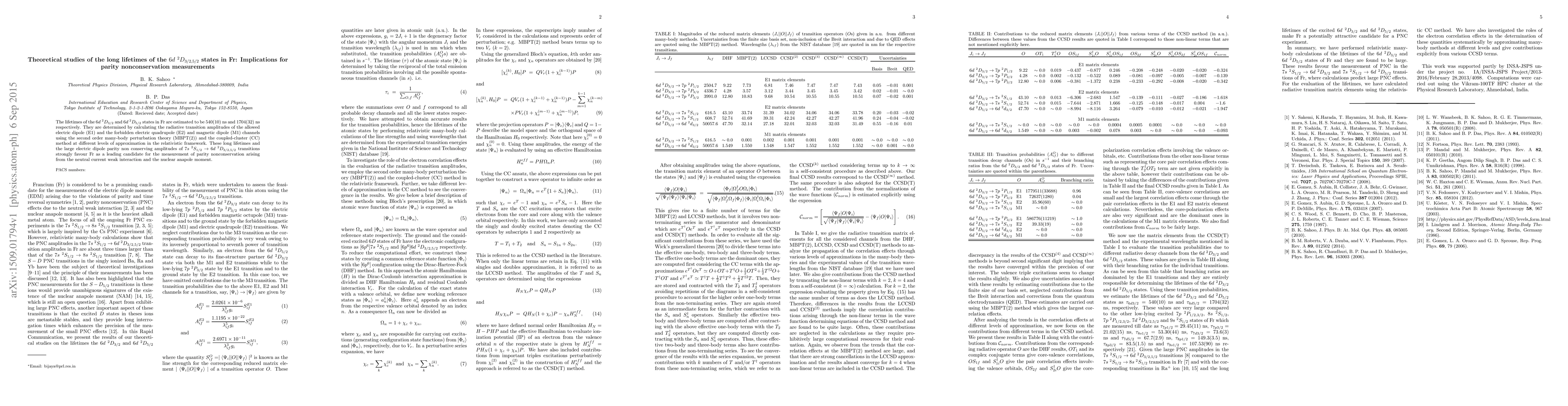 This paper estimates the long lifetimes of Fr's $6d \ ^2D_{3/2}$ and $6d \ ^2D_{5/2}$ states using MBPT(2) and CC methods, finding them to be 540(10) ns and 1704(32) ns respectively. These long lifetimes, along with significant electric dipole parity non-conserving amplitudes, make Fr a prime candidate for measuring parity nonconservation.