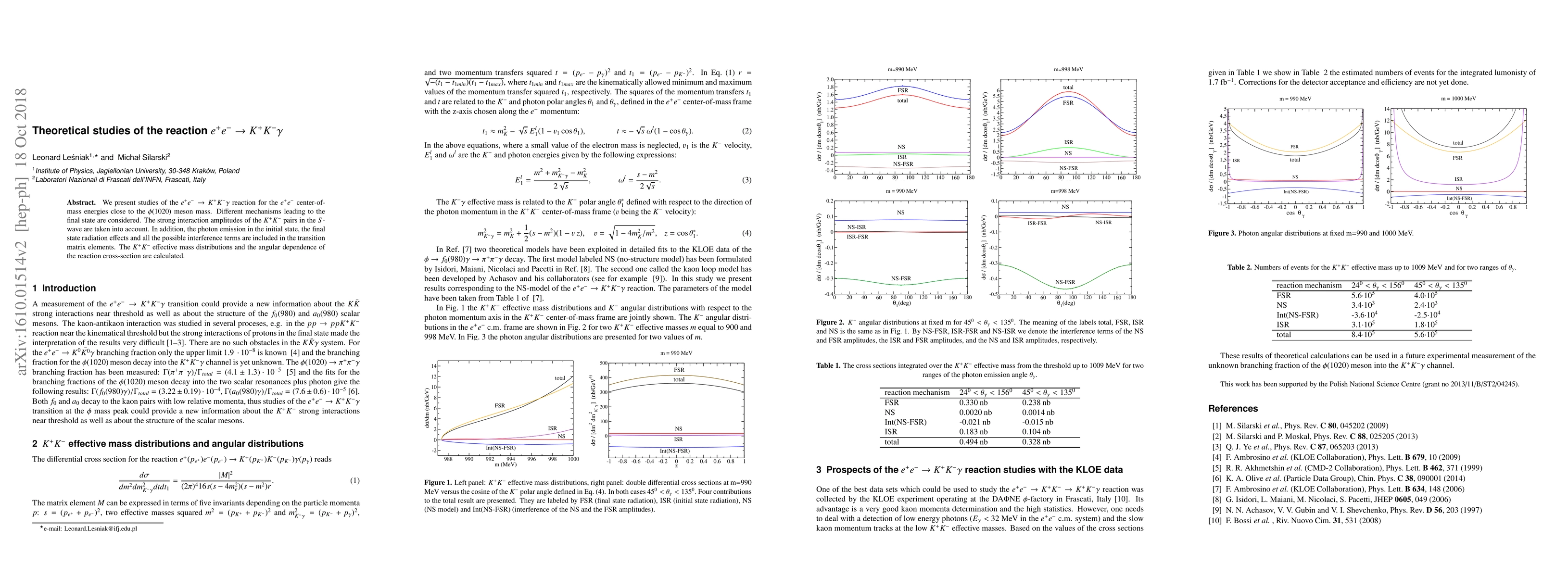 This paper investigates the e+ e- --> K+ K- gamma reaction near the phi(1020) meson mass, considering various mechanisms and strong interaction amplitudes for K+K- pairs. The study includes photon emission, final state radiation, and interference terms, calculating K+K- mass distributions and angular dependence of the reaction cross-section.