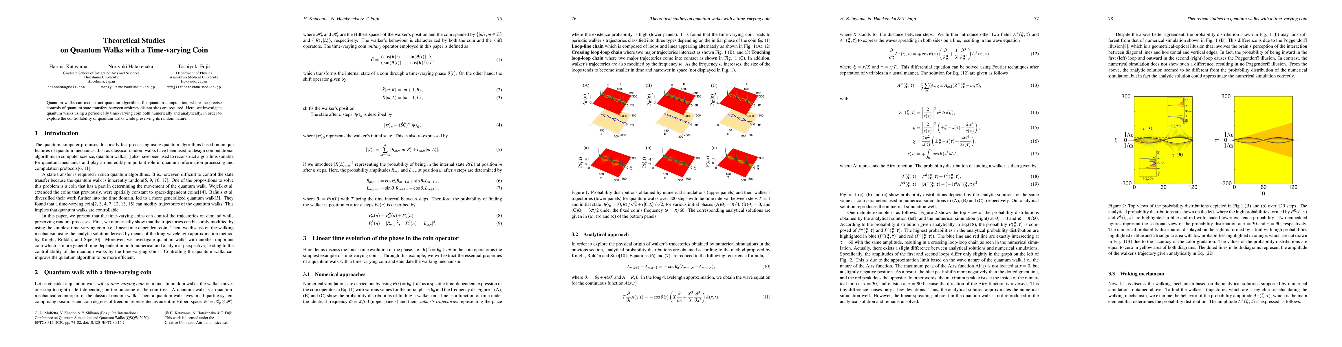 Quantum walks can reconstruct quantum algorithms for quantum computation, where the precise controls of quantum state transfers between arbitrary distant sites are required. Here, we investigate quantum walks using a periodically time-varying coin both numerically and analytically, in order to explore the controllability of quantum walks while preserving its random nature.