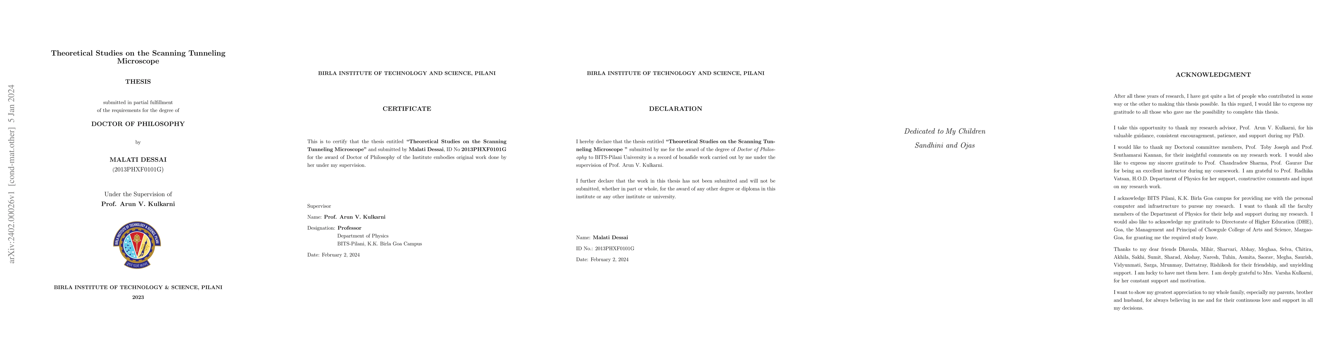 The thesis explores calculating tunneling current densities between planar conducting electrodes in an STM. It considers factors like bias voltages and the separation between electrodes, using Fermi energy and work functions. Pauli blocking effects on forward and reverse current densities are introduced, comparing Airy function solutions with WKB results. A 'Russell Potential' is defined for field lines, considering non-linearities and image force effects. A multi-slice method using the transfer matrix approach calculates tunneling currents for the Russell Potential and trapezoid + image force potentials. The Simmons image potential's unreasonable enhancement of tunneling currents prompts the construction of models with distributed charge, which show negligible image effects compared to trapezoidal potentials. Tunneling currents increase with bias voltage, decrease exponentially with tip-sample distance, and rise with increasing tip curvature radius. The resolving power of the STM degrades with blunter tips, higher bias voltages, and increased tip-sample distances. In essence, the thesis covers calculating tunneling current densities in STM, exploring different potential models and their effects. It discusses factors influencing tunneling behavior, like bias voltage, tip-sample distance, and tip curvature, revealing limitations in imaging capabilities under certain conditions.