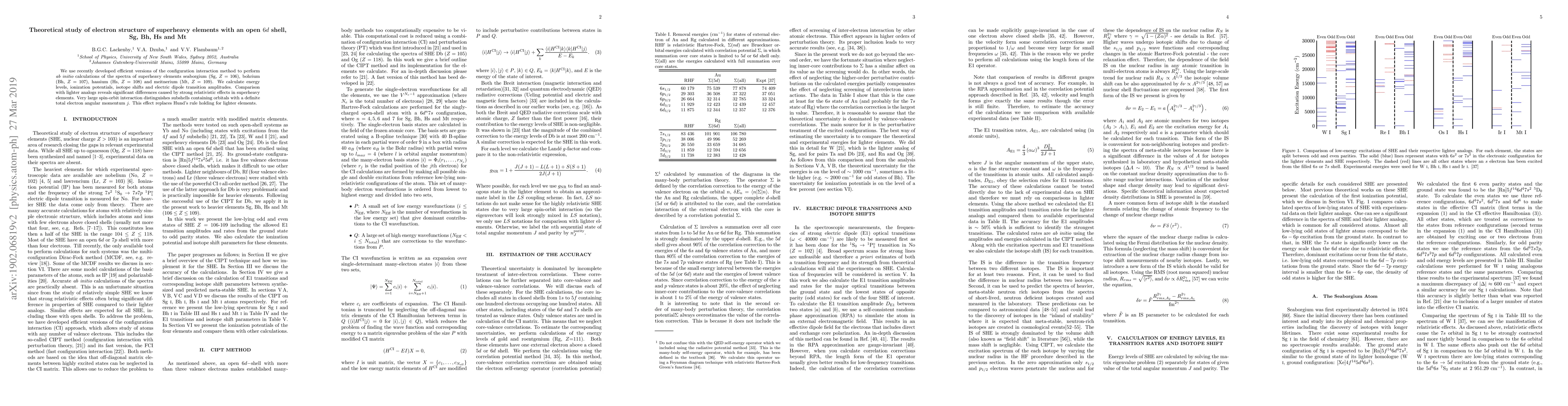 This study employs advanced configuration interaction methods to calculate the electron structures of superheavy elements Sg, Bh, Hs, and Mt, revealing significant relativistic effects and large spin-orbit interactions that alter electron subshell behavior compared to lighter elements.