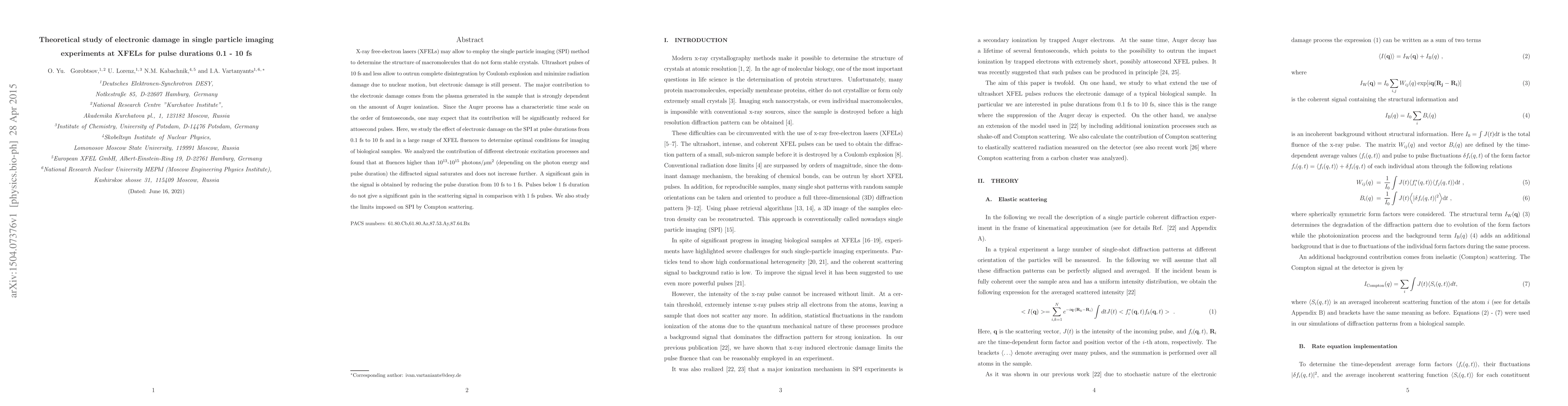 Researchers studied electronic damage in single particle imaging experiments at XFELs using pulses from 0.1 fs to 10 fs and found optimal conditions for imaging biological samples with reduced electronic damage.