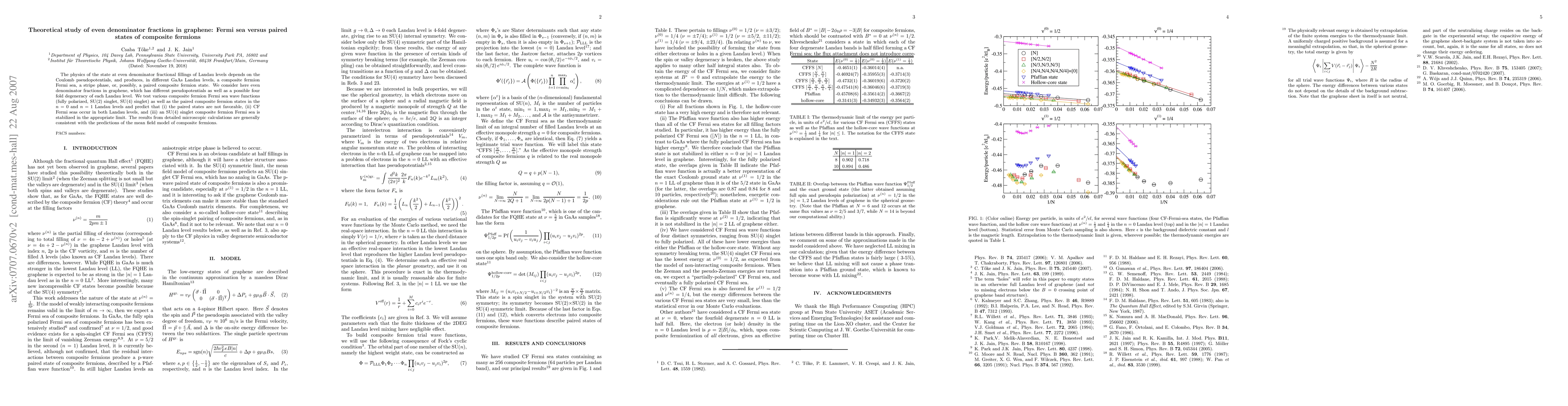 This paper investigates the physics of even denominator fractional quantum Hall states in graphene, focusing on the composite fermion Fermi sea versus paired states. The study predicts that paired composite fermion states are unfavorable, while Fermi seas occur in both n=0 and n=1 Landau levels, with an SU(4) singlet Fermi sea being stabilized in specific conditions.