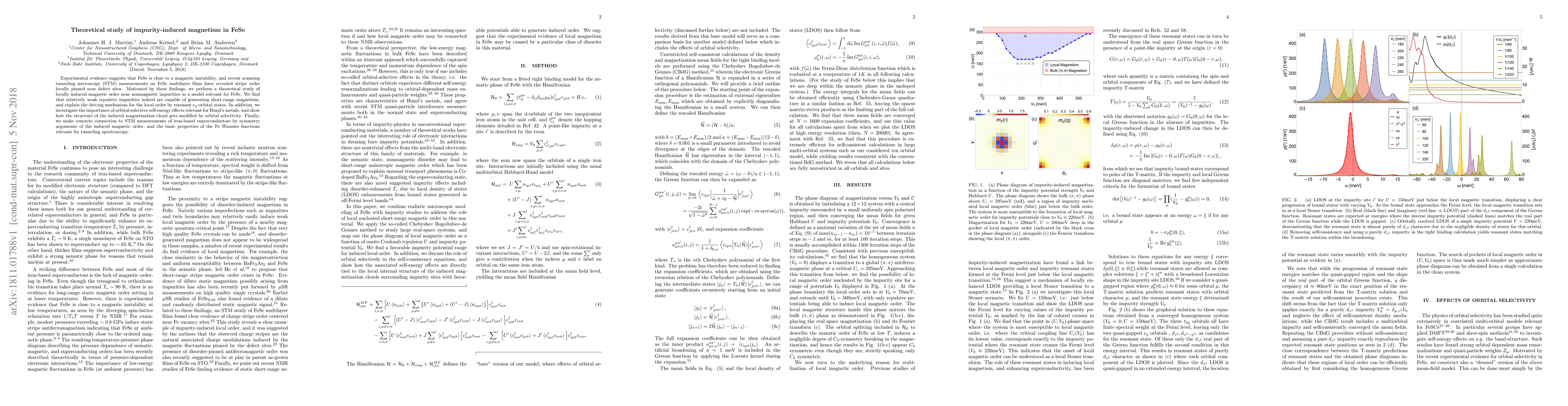 This paper theoretically investigates how nonmagnetic impurities induce magnetism in FeSe, finding that weak repulsive impurities generate short-range magnetism via resonant eg-orbital states. It also explores orbital-selective self-energy effects and connects the findings to STM measurements of iron-based superconductors.