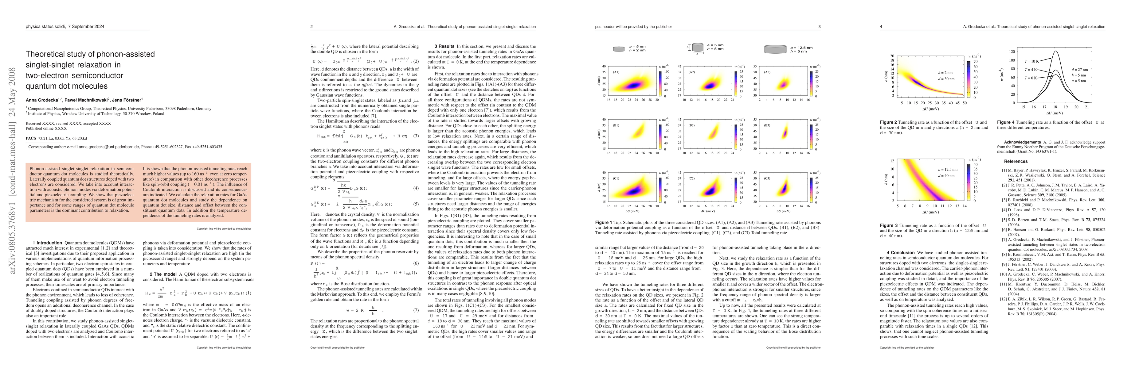 This paper theoretically investigates phonon-assisted singlet-singlet relaxation in two-electron semiconductor quantum dot molecules, emphasizing the significant role of piezoelectric coupling over spin-orbit coupling. The study calculates relaxation rates for GaAs molecules, analyzing the effects of quantum dot size, distance, and temperature.