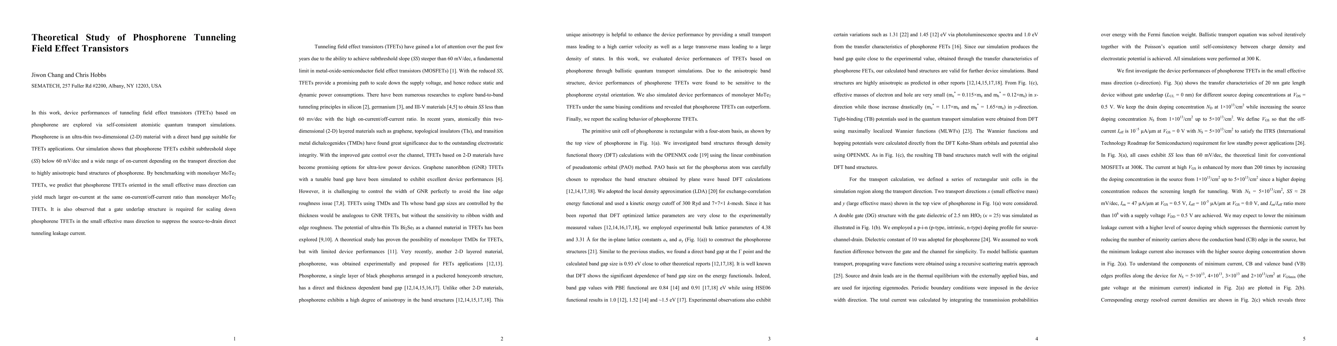 This study explores phosphorene-based tunneling field effect transistors (TFETs) using quantum simulations, revealing that they achieve subthreshold slopes below 60 mV/dec and higher on-currents compared to monolayer MoTe2 TFETs, especially in the small effective mass direction. Gate underlap structures are necessary for scaling down phosphorene TFETs to suppress leakage currents.