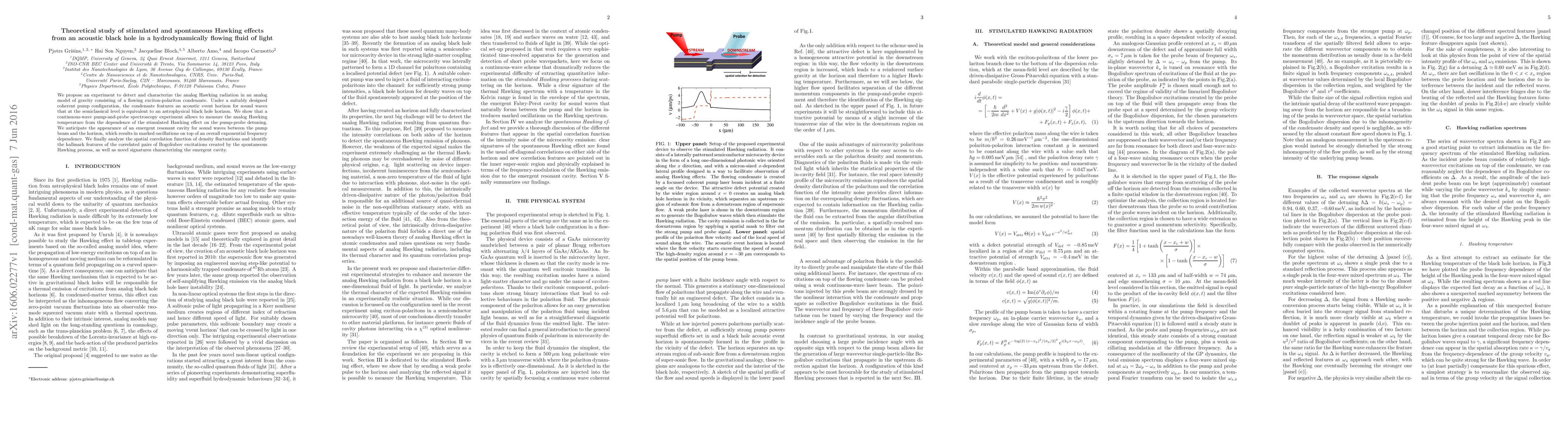 This paper proposes an experiment to detect analog Hawking radiation in an exciton-polariton condensate, using a flowing fluid of light to simulate a black hole. The study aims to measure the analog Hawking temperature through spectroscopy, identifying emergent resonant cavities and the signatures of spontaneous Hawking effects.
