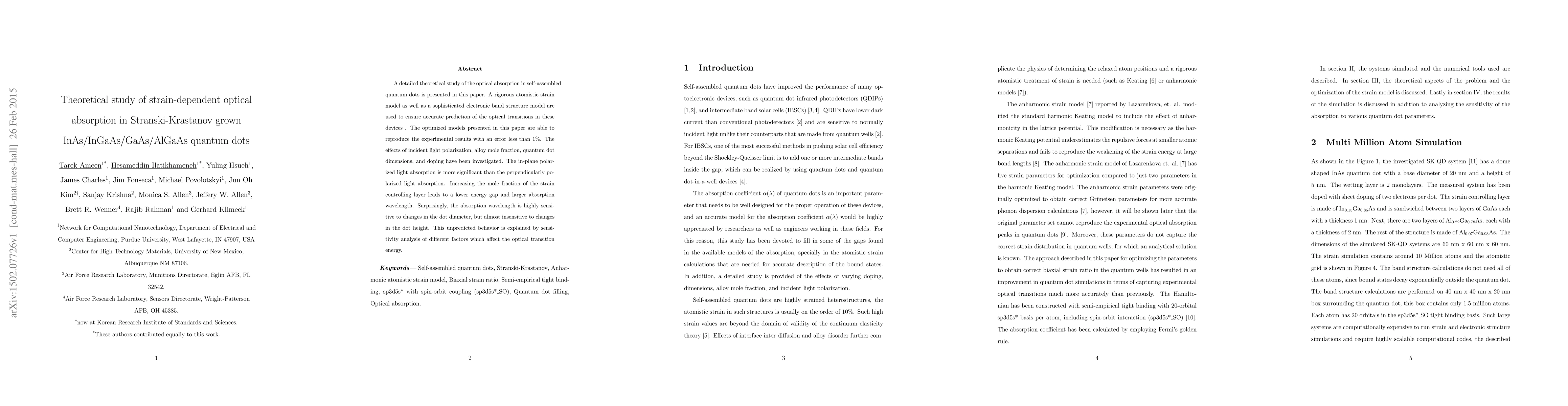 A theoretical study of quantum dots reveals that strain-dependent optical absorption is significantly affected by incident light polarization, alloy mole fraction, and quantum dot dimensions. The findings have implications for the design and optimization of quantum dot-based devices.