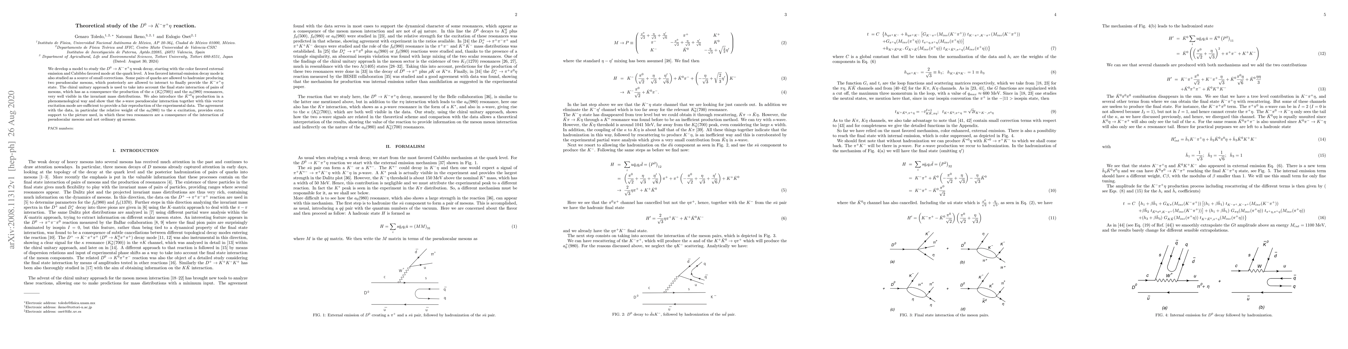 Researchers developed a model to study the $D^0 o K^- ho o K^- ho exteta$ weak decay using the chiral unitary approach, finding that final state interactions produce $eta_0(980)$ and $ar{K}^{*0} exteta$.