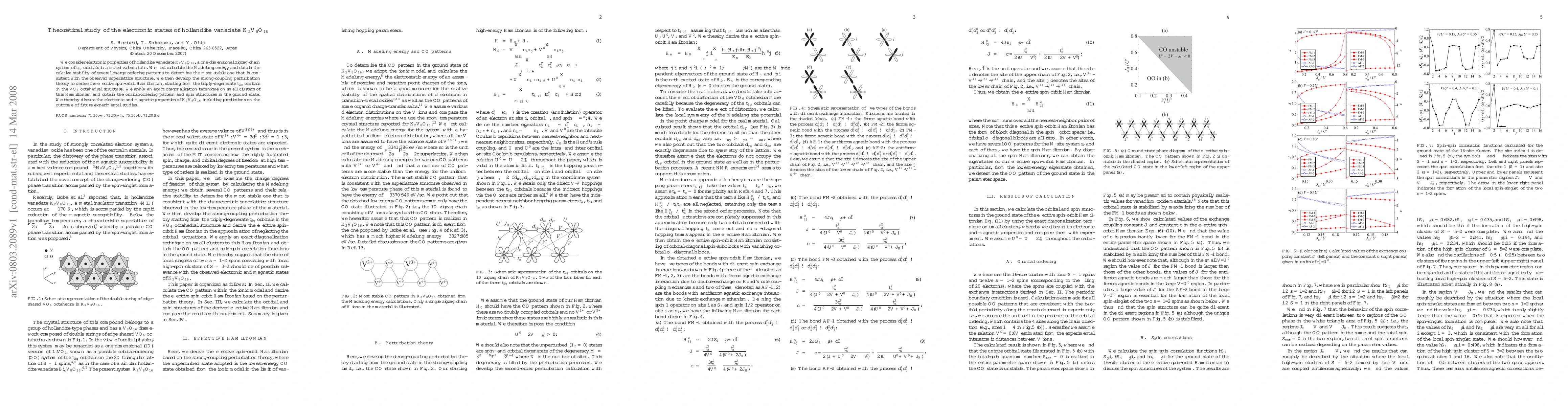 Researchers studied the electronic properties of hollandite vanadate K2V8O16, predicting its most stable charge-ordering pattern, spin structures, and electronic/magnetic properties through theoretical calculations and simulations.