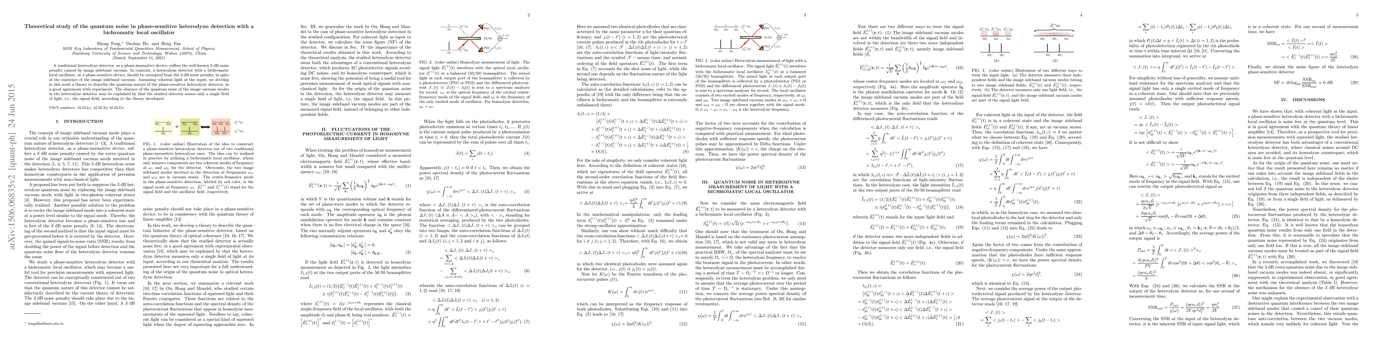 A traditional heterodyne detector, as a phase-insensitive device, suffers the well-known 3 dB noise penalty caused by image sideband vacuum. In contrast, a heterodyne detector with a bichromatic local oscillator, as a phase-sensitive device, should be exempted from the 3 dB noise penalty, in spite of the existence of the image sideband vacuum. Assuming coherent light at the input, we develop in this work a theory to describe the quantum nature of the phase-sensitive heterodyne detector, in a good agreement with experiment. The absence of the quantum noise of the image vacuum modes in the heterodyne detector may be explained by that the studied detector senses only a single field of light, i.e., the signal field, according to the theory developed.