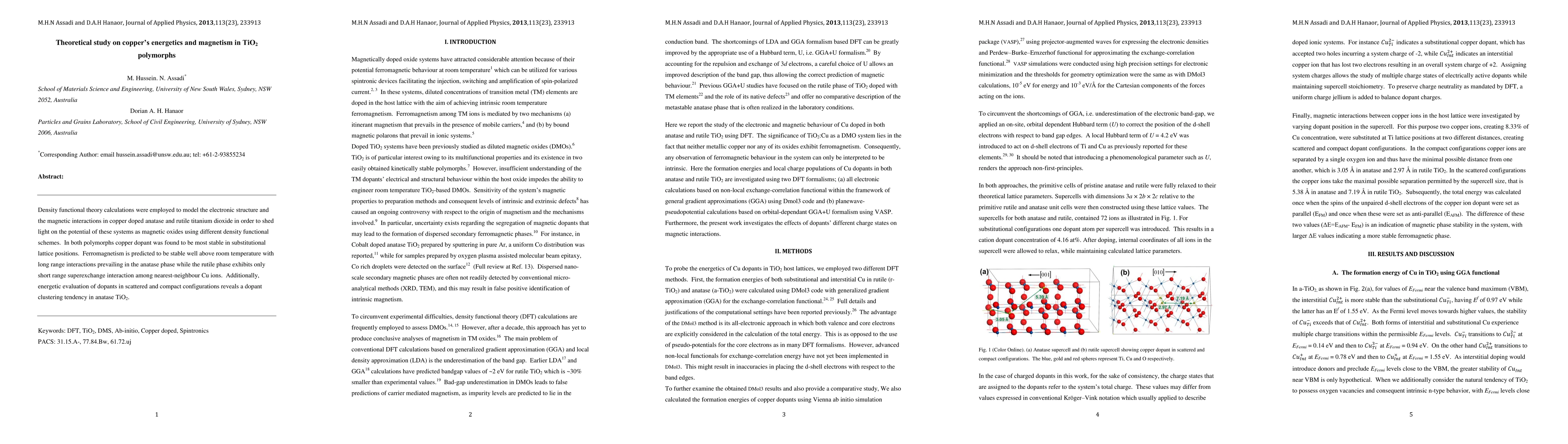 This study uses density functional theory to investigate copper doping in anatase and rutile TiO2, revealing stable ferromagnetism in anatase above room temperature and short-range interactions in rutile. Dopant clustering is observed in anatase TiO2.