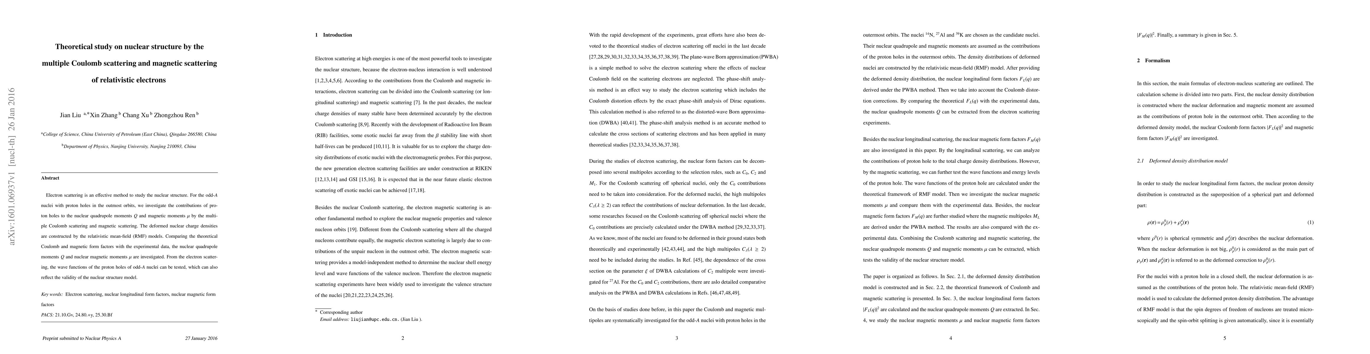 Electron scattering is an effective method to study the nuclear structure. For the odd-$A$ nuclei with proton holes in the outmost orbits, we investigate the contributions of proton holes to the nuclear quadrupole moments $Q$ and magnetic moments $\mu$ by the multiple Coulomb scattering and magnetic scattering. The deformed nuclear charge densities are constructed by the relativistic mean-field (RMF) models. Comparing the theoretical Coulomb and magnetic form factors with the experimental data, the nuclear quadrupole moments $Q$ and nuclear magnetic moments $\mu$ are investigated. From the electron scattering, the wave functions of the proton holes of odd-$A$ nuclei can be tested, which can also reflect the validity of the nuclear structure model.