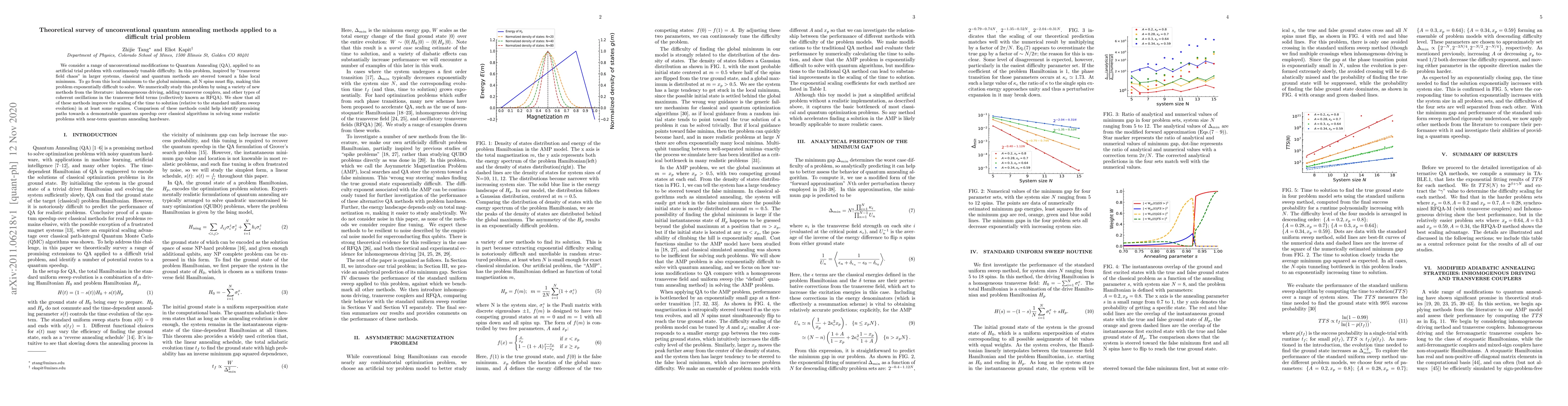 We consider a range of unconventional modifications to Quantum Annealing (QA), applied to an artificial trial problem with continuously tunable difficulty. In this problem, inspired by "transverse field chaos" in larger systems, classical and quantum methods are steered toward a false local minimum. To go from this local minimum to the global minimum, all N spins must flip, making this problem exponentially difficult to solve. We numerically study this problem by using a variety of new methods from the literature: inhomogeneous driving, adding transverse couplers, and other types of coherent oscillations in the transverse field terms (collectively known as RFQA). We show that all of these methods improve the scaling of the time to solution (relative to the standard uniform sweep evolution) in at least some regimes. Comparison of these methods could help identify promising paths towards a demonstrable quantum speedup over classical algorithms in solving some realistic problems with near-term quantum annealing hardware.