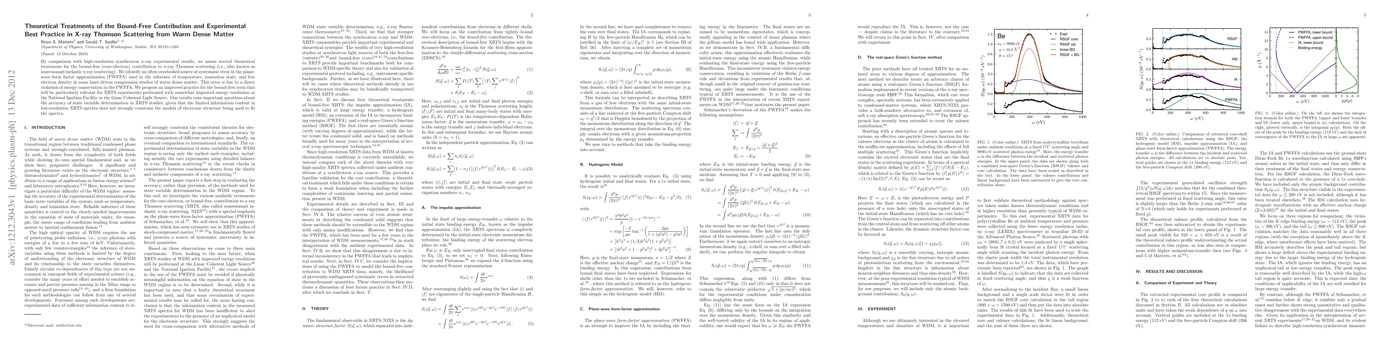 By comparison with high-resolution synchrotron x-ray experimental results, we assess several theoretical treatments for the bound-free (core-electron) contribution to x-ray Thomson scattering (i.e., also known as nonresonant inelastic x-ray scattering). We identify an often overlooked source of systematic error in the plane- wave form factor approximation (PWFFA) used in the inference of temperature, ionization state, and free electron density in some laser-driven compression studies of warm dense matter. This error is due to a direct violation of energy conservation in the PWFFA. We propose an improved practice for the bound-free term that will be particularly relevant for XRTS experiments performed with somewhat improved energy resolution at the National Ignition Facility or the Linac Coherent Light Source. Our results raise important questions about the accuracy of state variable determination in XRTS studies, given that the limited information content in low-resolution XRTS spectra does not strongly constrain the models of electronic structure being used to fit the spectra.