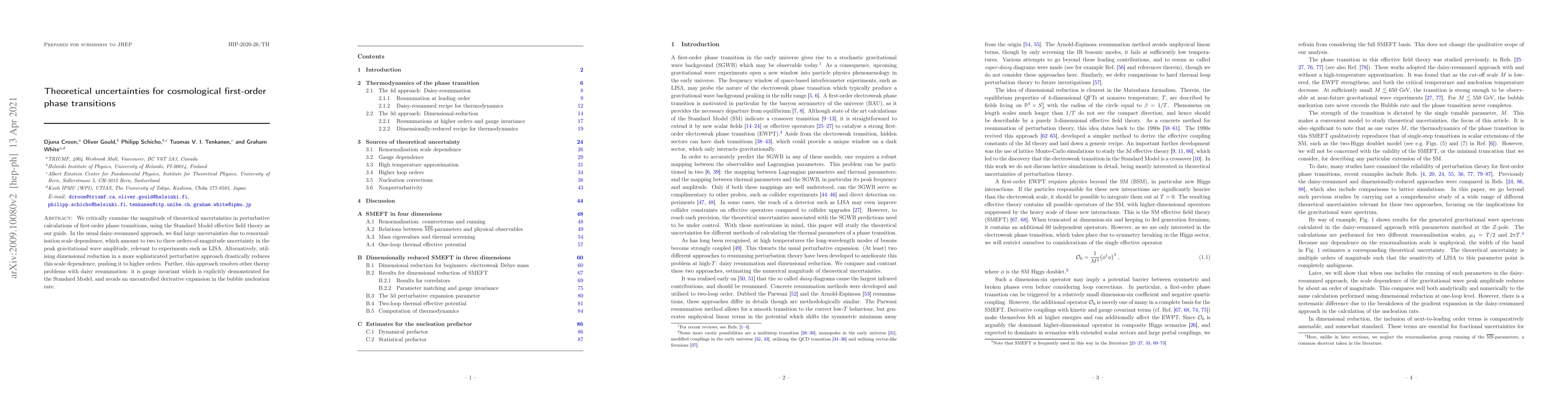 We critically examine the magnitude of theoretical uncertainties in perturbative calculations of first-order phase transitions, using the Standard Model effective field theory as our guide. In the usual daisy-resummed approach, we find large uncertainties due to renormalisation scale dependence, which amount to two to three orders-of-magnitude uncertainty in the peak gravitational wave amplitude, relevant to experiments such as LISA. Alternatively, utilising dimensional reduction in a more sophisticated perturbative approach drastically reduces this scale dependence, pushing it to higher orders. Further, this approach resolves other thorny problems with daisy resummation: it is gauge invariant which is explicitly demonstrated for the Standard Model, and avoids an uncontrolled derivative expansion in the bubble nucleation rate.