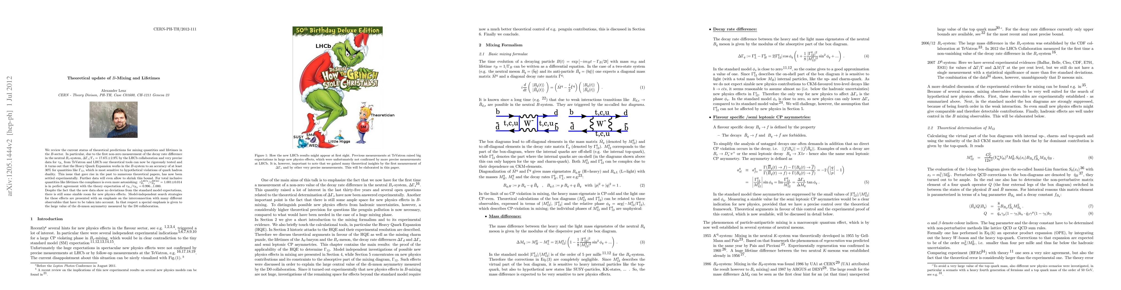 We review the current status of theoretical predictions for mixing quantities and lifetimes in the $B$-sector. In particular, due to the first non-zero measurement of the decay rate difference in the neutral $B_s$-system, $\Delta \Gamma_s/ \Gamma_s = 17.6 % \pm 2.9 %$ by the LHCb collaboration and very precise data for $\tau_{B_s}$ from TeVatron and LHCb our theoretical tools can now be rigorously tested and it turns out that the Heavy Quark Expansion works in the $B$-system to an accuracy of at least 30% for quantities like $\Gamma_{12}$, which is most sensitive to hypothetical violations of quark hadron duality. This issue that gave rise in the past to numerous theoretical papers, has now been settled experimentally. Further data will even allow to shrink this bound. For total inclusive quantities like lifetimes the compliance is even more astonishing: $\tau_{B_s}^{\rm LHCb}/ \tau_{B_d}^{\rm HFAG} = 1.001 \pm 0.014$ is in perfect agreement with the theory expectation of $\tau_{B_s}/\tau_{B_d} = 0.996 ... 1.000$. Despite the fact that the new data show no deviations from the standard model expectations, there is still some sizable room for new physics effects. Model-independent search strategies for these effects are presented with an emphasis on the interconnection with many different observables that have to be taken into account. In that respect a special emphasis is given to the large value of the di-muon asymmetry measured by the D0 collaboration.