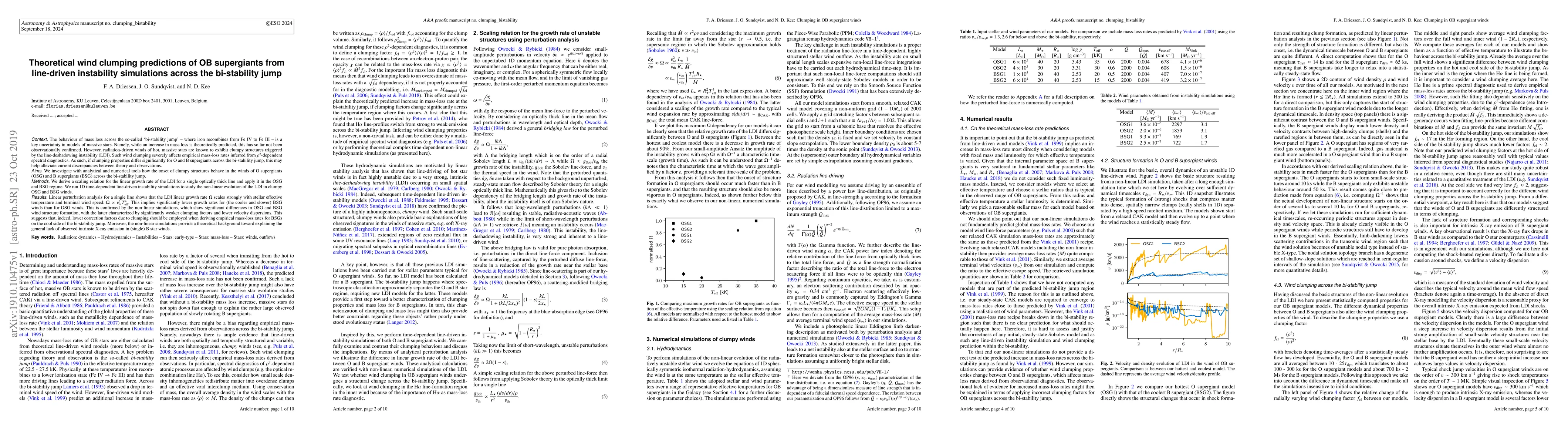 The study uses analytical and numerical tools, including 1D time-dependent line-driven instability simulations, to investigate the onset of clumpy structures in O and B supergiant winds across the bi-stability jump.