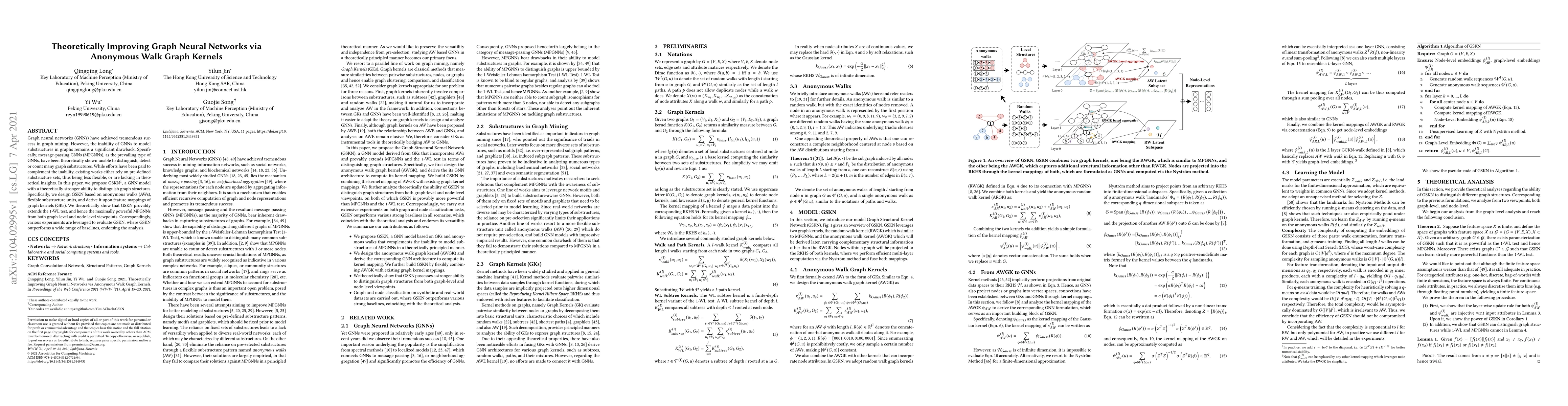 This paper proposes GSKN, a novel graph neural network based on anonymous walk graphs and graph kernels, to theoretically enhance the ability to distinguish graph structures. GSKN extends the 1-WL test, proving its superiority over existing message-passing GNNs, and outperforms baselines in experiments.