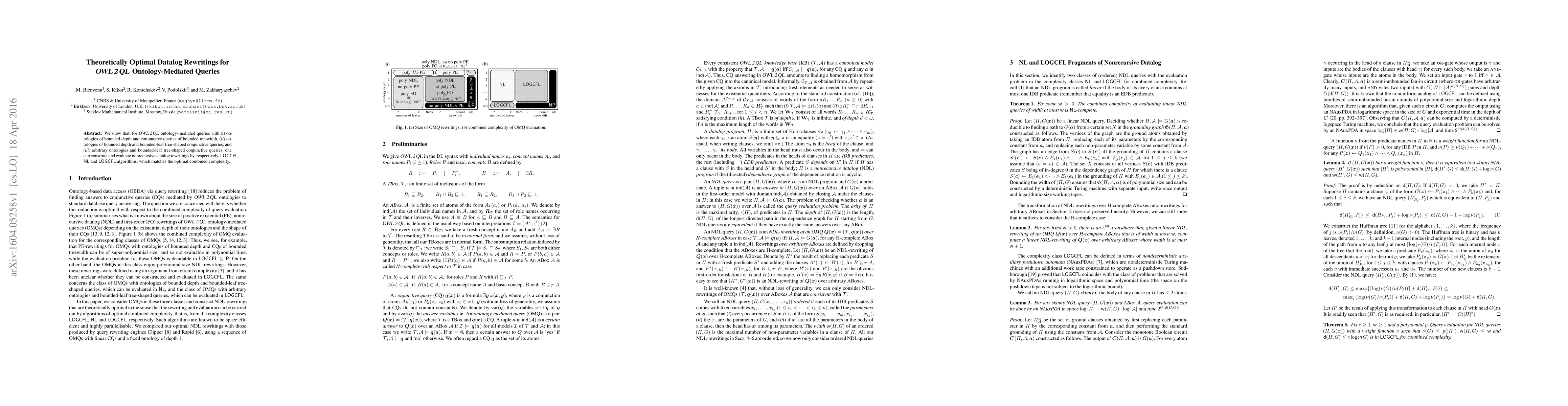 The paper introduces algorithms for constructing nonrecursive datalog rewritings for OWL 2 QL ontology-mediated queries, achieving optimal complexity classes for various ontology and query constraints.