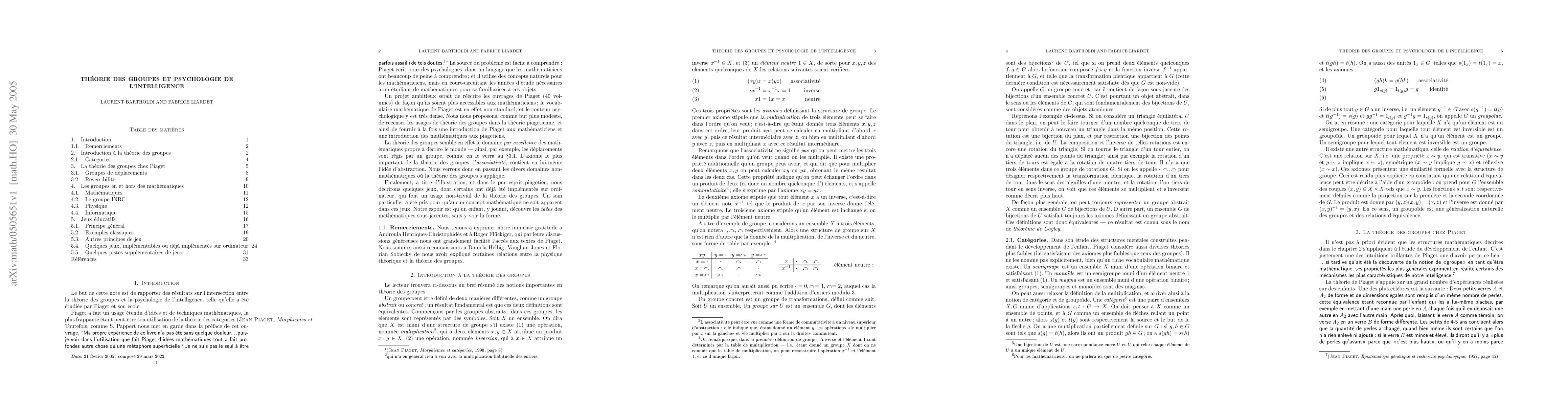 We describe the links between group theory and psychology, in particular through the works of Piaget. We show that groups appear universally in his description of children's intelligence, and that the notion of groupoid, which was little considered in psychology, may be fundamental. We study in particular the applicability of group theory concepts to the development of educative games.